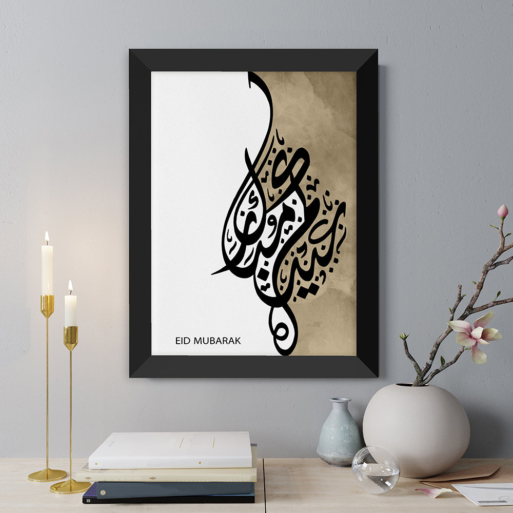 “Eidi” or “eidia” is a gift often given at Eid to family or friends. After Eid prayers it is time for the celebrations with loved ones. Eid Mubarak! Our standout print contains the phrase ‘Eid Mubarak’ comes as standard in a stylised Arabic script. Half the image is white and the other half comes in a gorgeous golden hue.