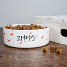 Deep ceramic cat bowl with orange fish design. Can be personalised with your cat's name. Hand Wash Only