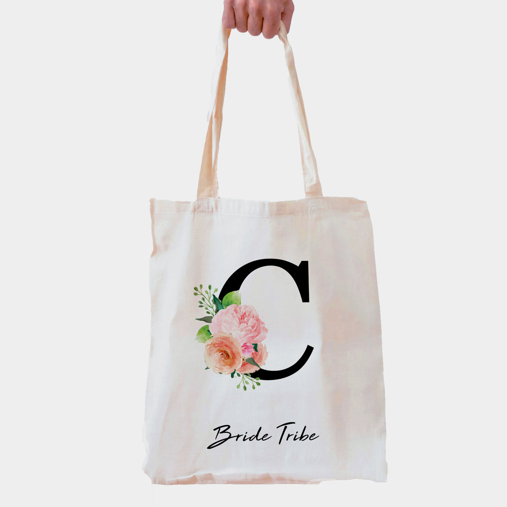 Personalised Floral Initial Bridesmaid Tote Bag