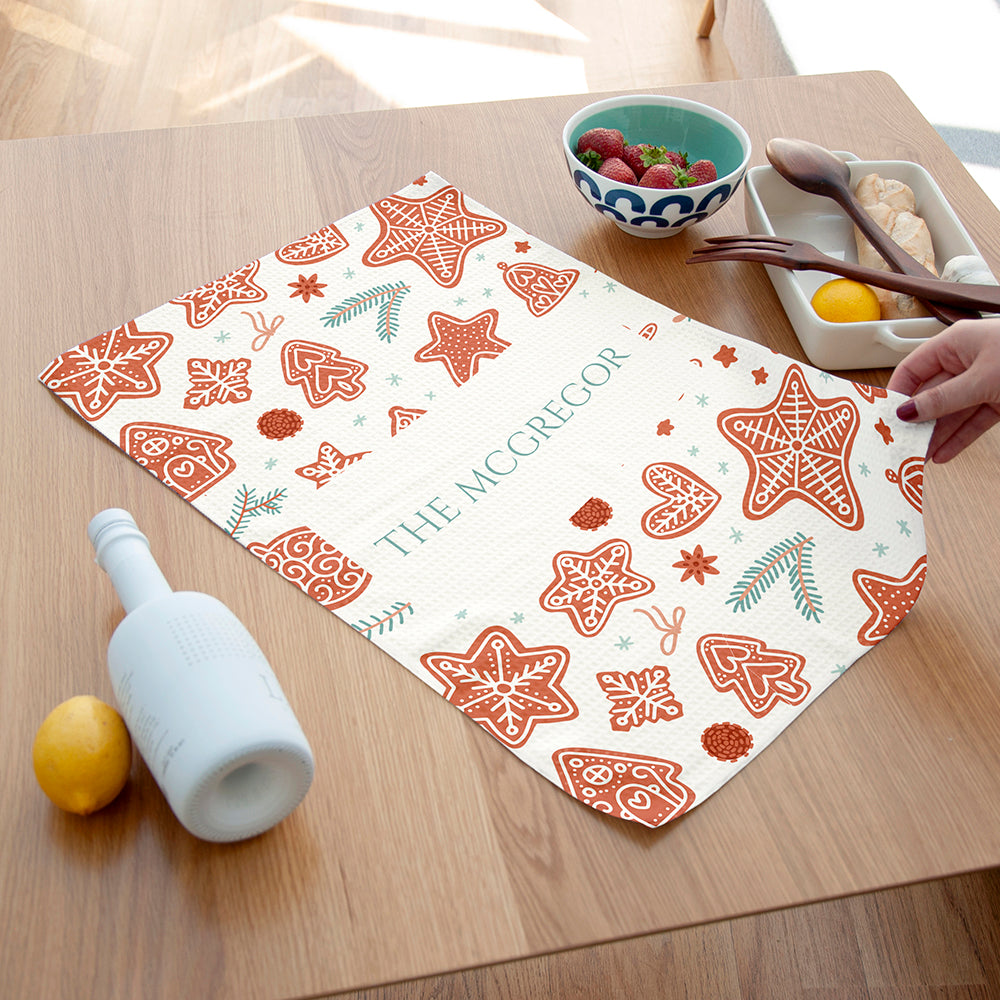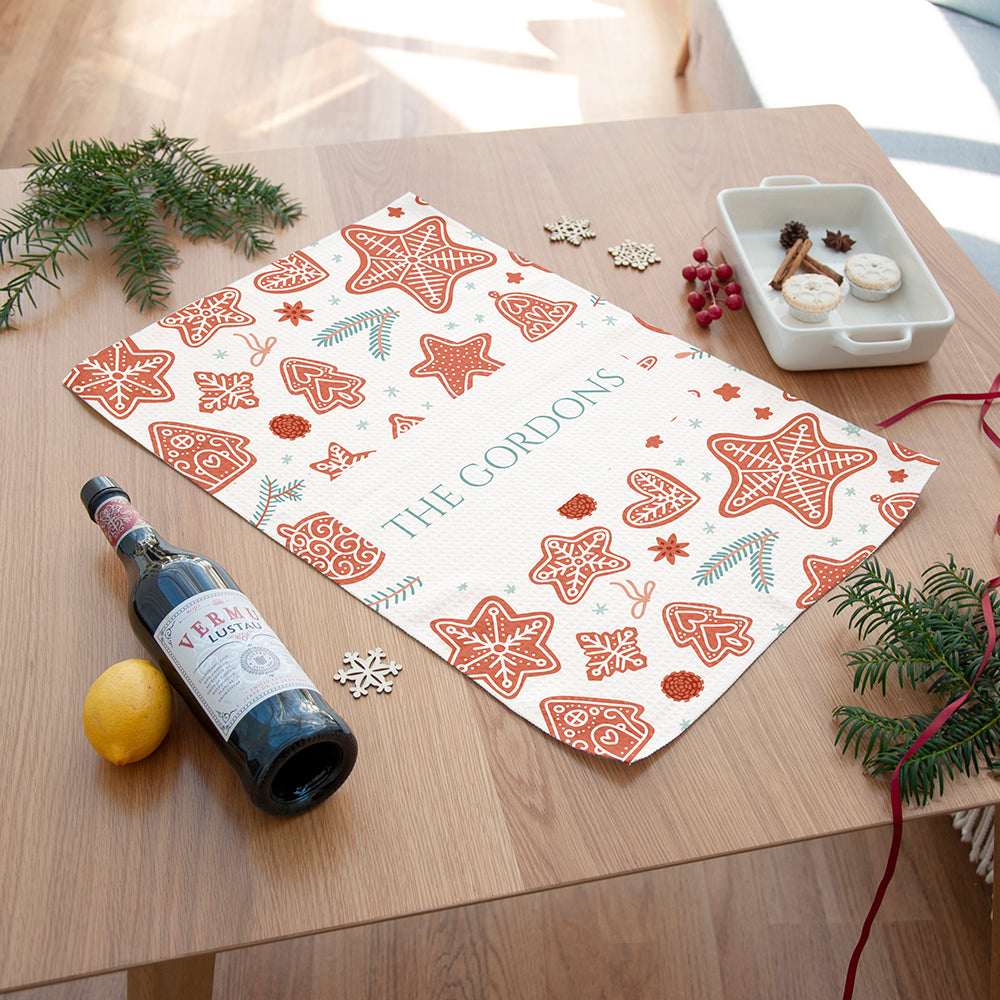 If you’re spending time in the kitchen during the festive season, then our Personalised Christmas Gingerbread Wallpaper Tea Towel is the perfect addition to your kitchen décor! Made from durable polyester, this tea towel features a super sweet gingerbread man design that is perfect for adding a touch of festive cheer to your kitchen.