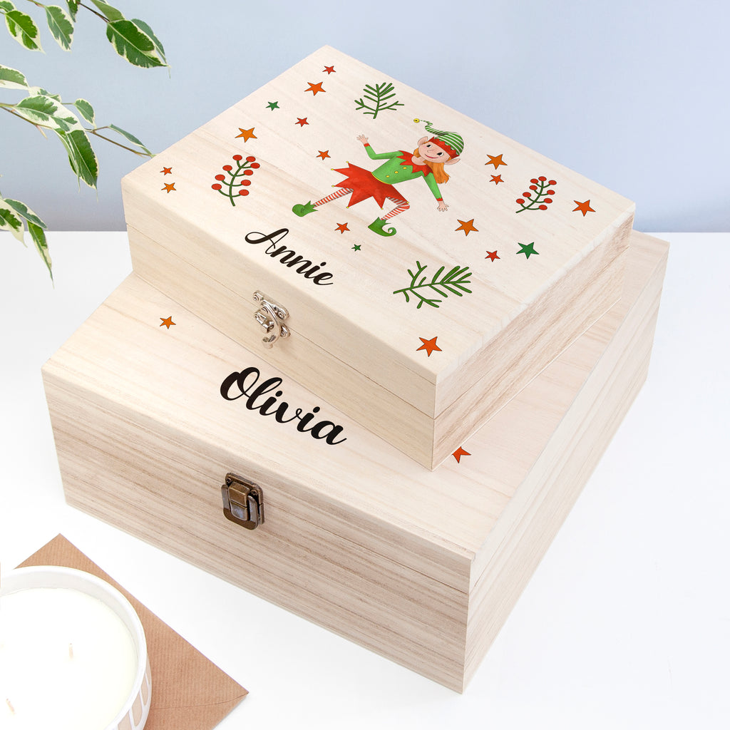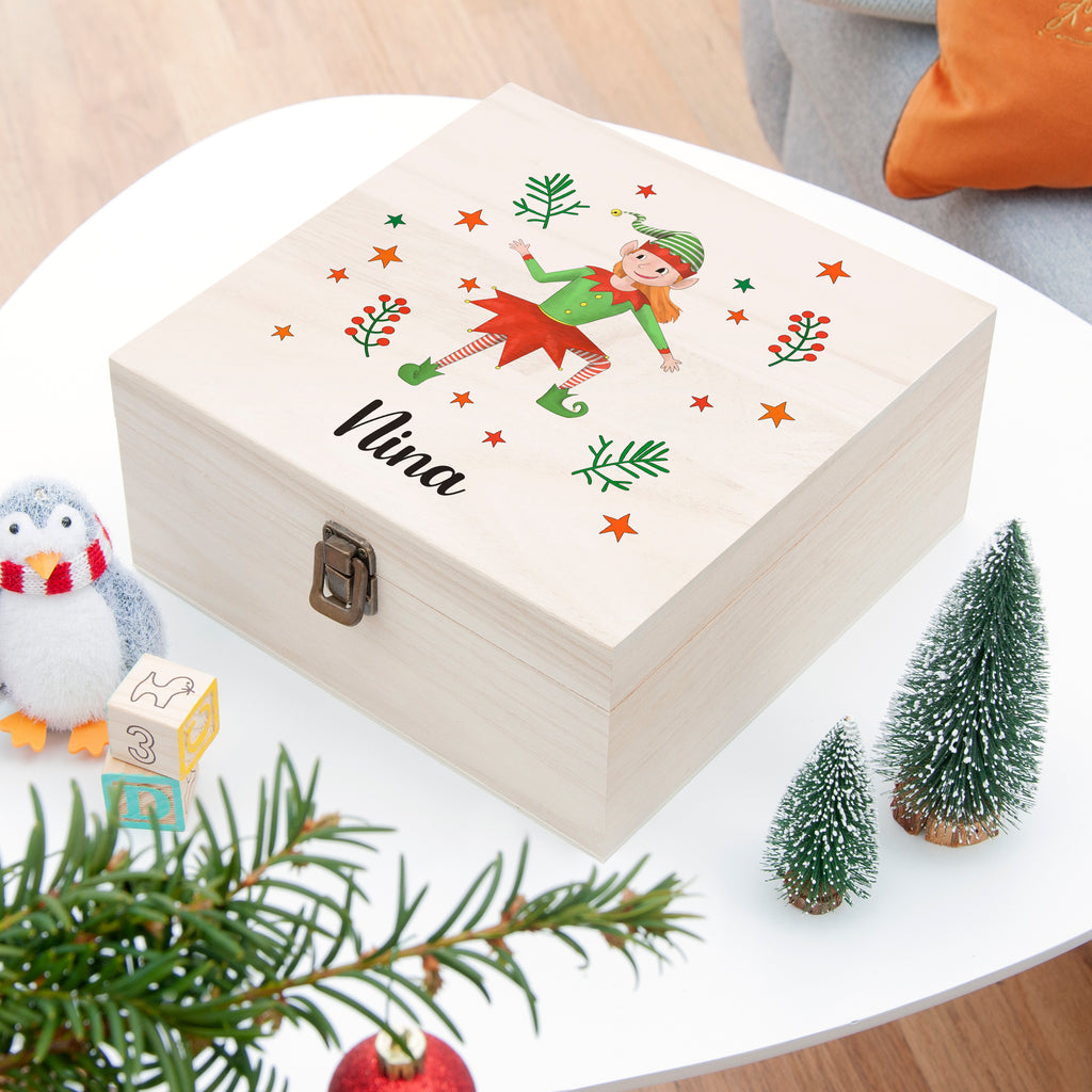 Spread holiday cheer this year with our fun and stylish Personalised Girl Elf Christmas Eve Box. It's the perfect way to get your loved ones into the festive spirit! This magical and delightful keepsake box is made of wood and features playing elves - how adorable is that! It’ll make a wonderful gift that your little one is sure to treasure forever.