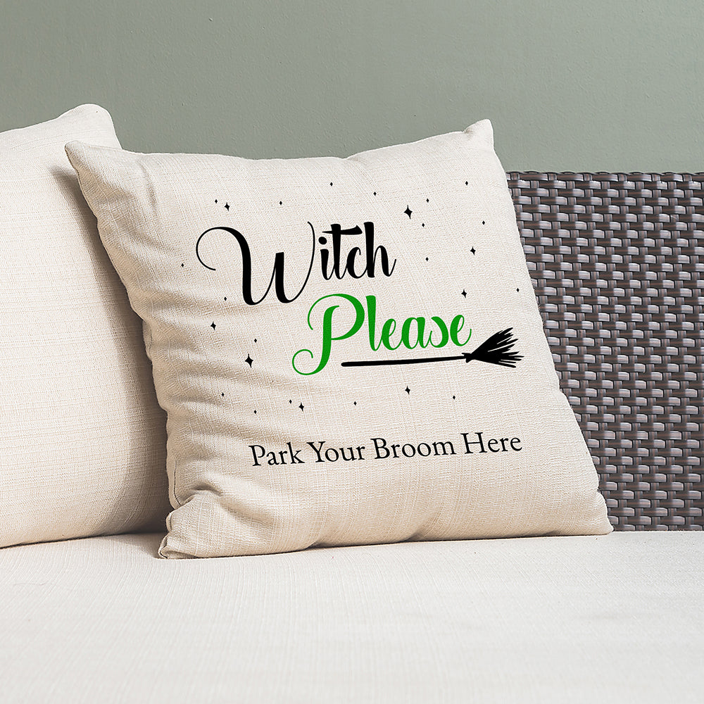 Personalised Halloween Witches Broom Cushion Cover
