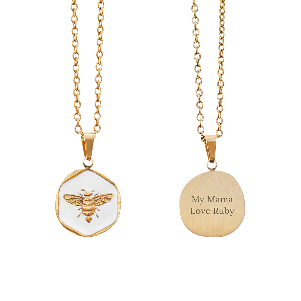 Featuring a gorgeous Honey Bee design on the pendant, which symbolises focus and dedication, our premium quality Personalised Honey Bee Pendant Necklace will make an excellent addition to any outfit. No matter the occasion, whether it is formal or something more casual, her gorgeous pendant necklace will make a statement accessory that's bound to show off and treasure.