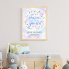 Looking for a positive and inspirational wall print for your child’s bedroom wall? You’ve come to the right place! Our personalised just the way you are print will make a wonderful addition to any bedroom or playroom wall and will provide an joyous, uplifting message to your little one whenever they’re looking for guidance.