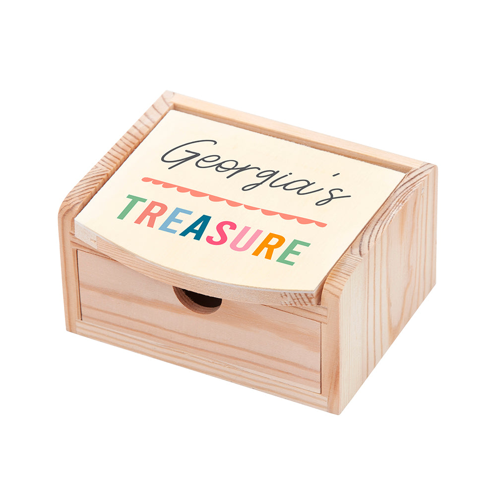 Add some colour and glamour to a loved one’s dressing table with our fabulous personalised kid’s colourful jewellery box. The perfect size for all her jewellery essentials, this practical and exquisitely crafted wooden trinket holder will make the perfect gift for her on any special occasion. She's bound to treasure this breathtaking accessory box forever!