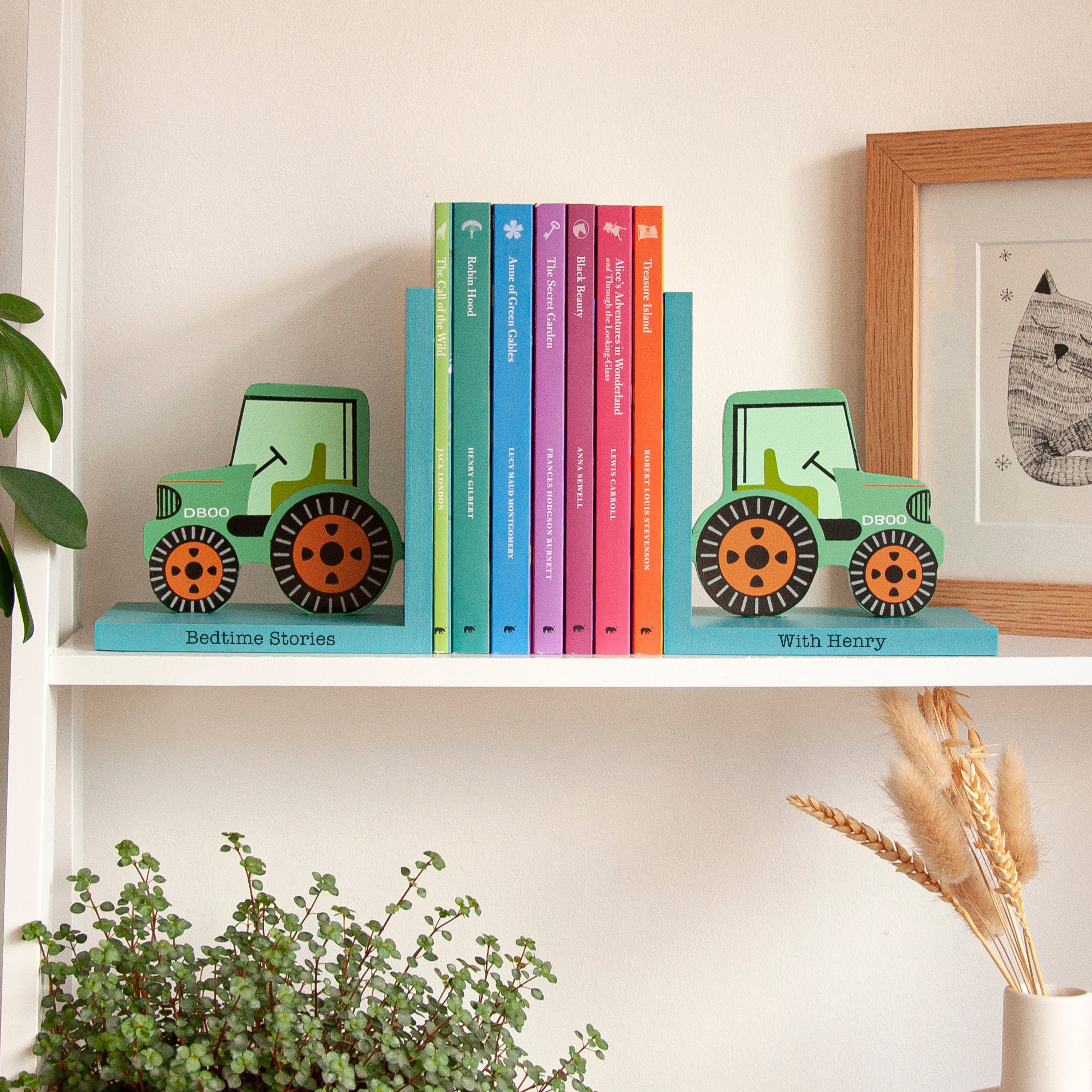 Struggling to find that perfect birthday gift for your book loving little one? We’ve got what you’re looking for with our gorgeous personalised kids bookends with a sweet green tractor design. It’s sure to keep their books looking neat and tidy on their bookshelf. Grab a book and transport yourself to an exciting world of endless possibilities - that’s the power of the written word!