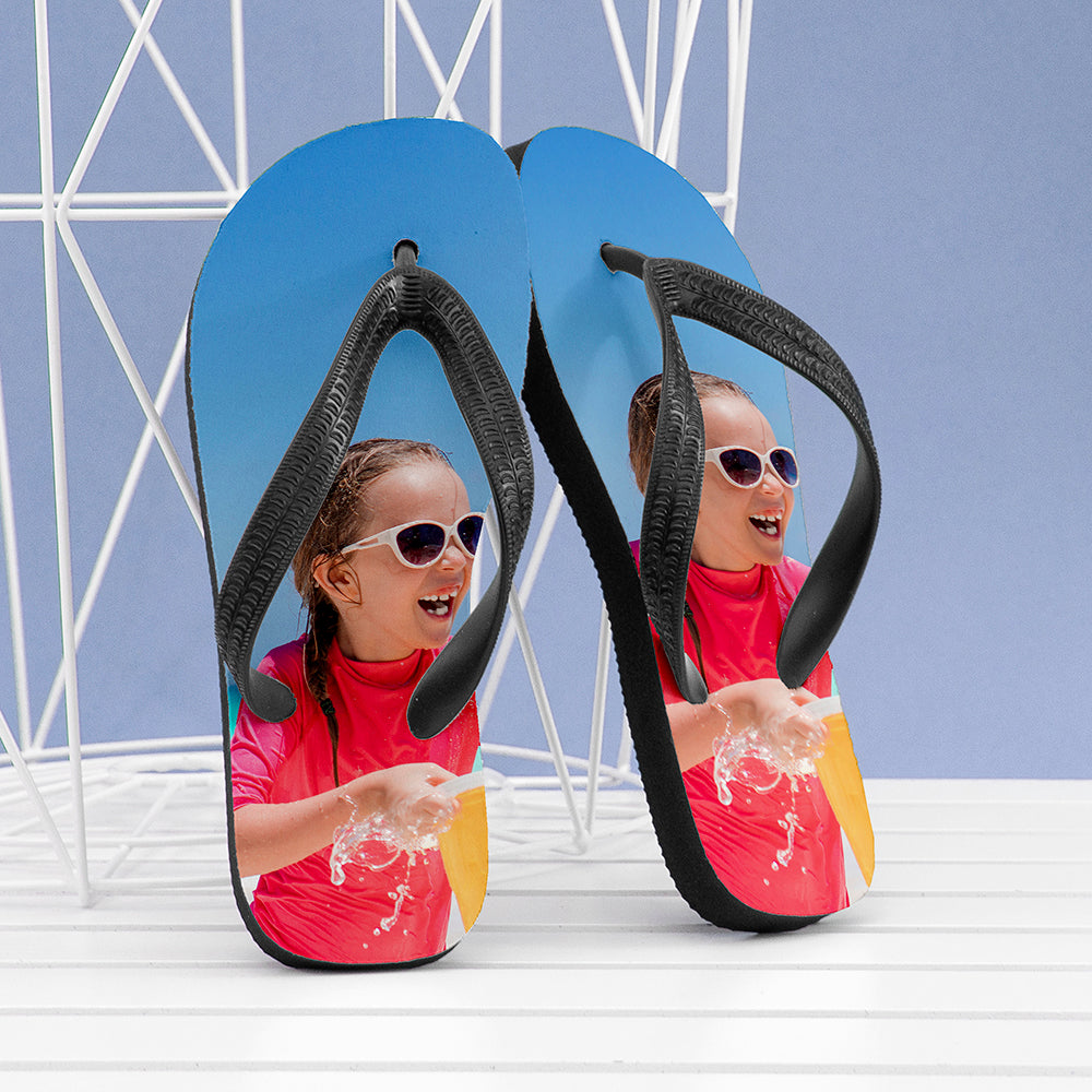Whether it's a sunny day at the beach, a poolside party, or just kicking back in the backyard, these awesome personalised kid’s photo flip flops are the must-have accessory for every summer adventure. Every step will be a trip down memory lane*!