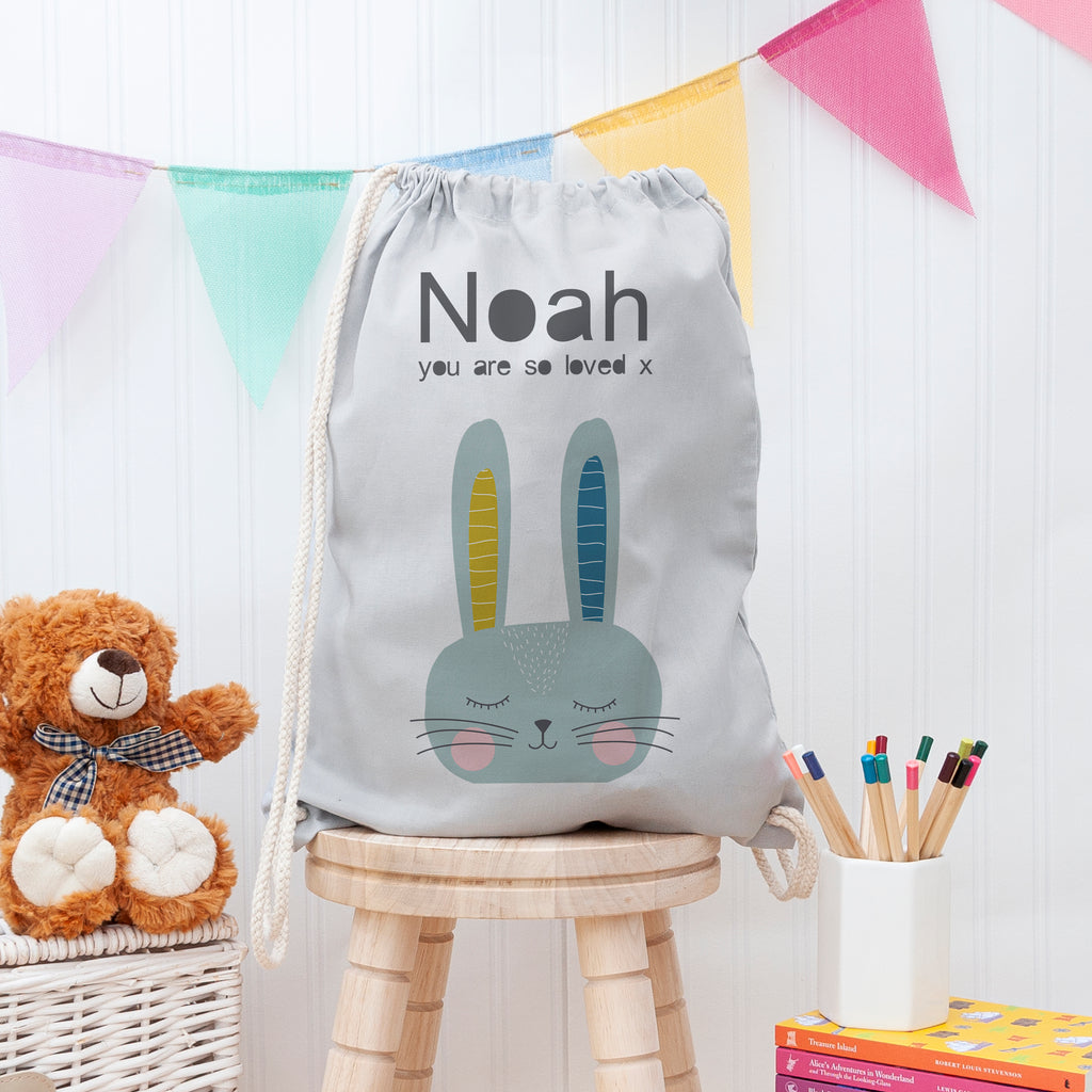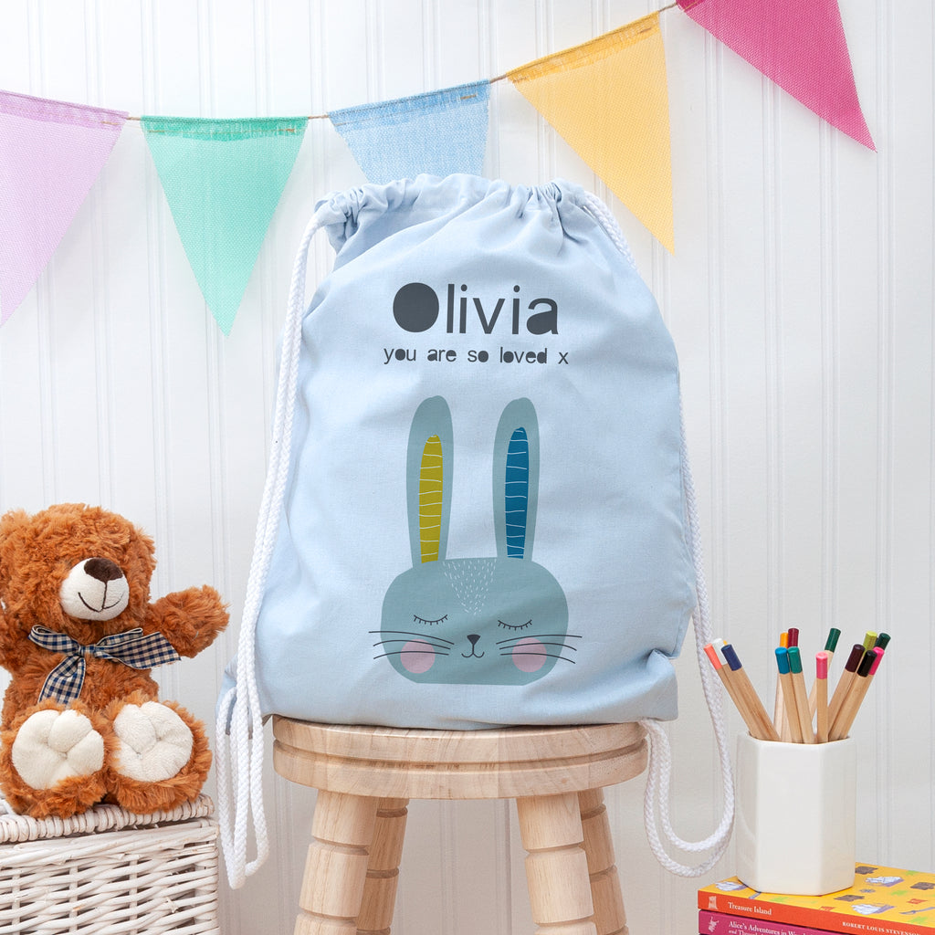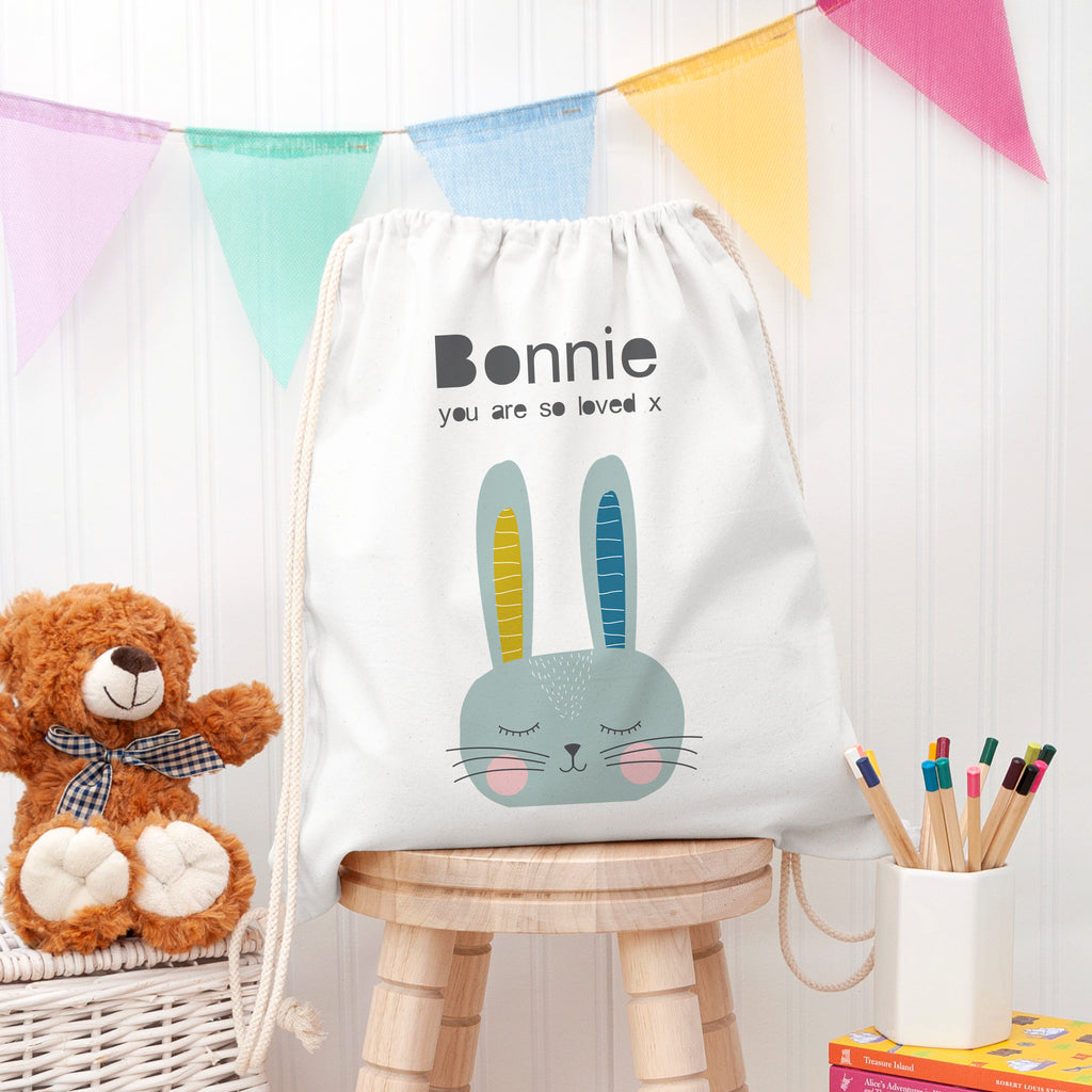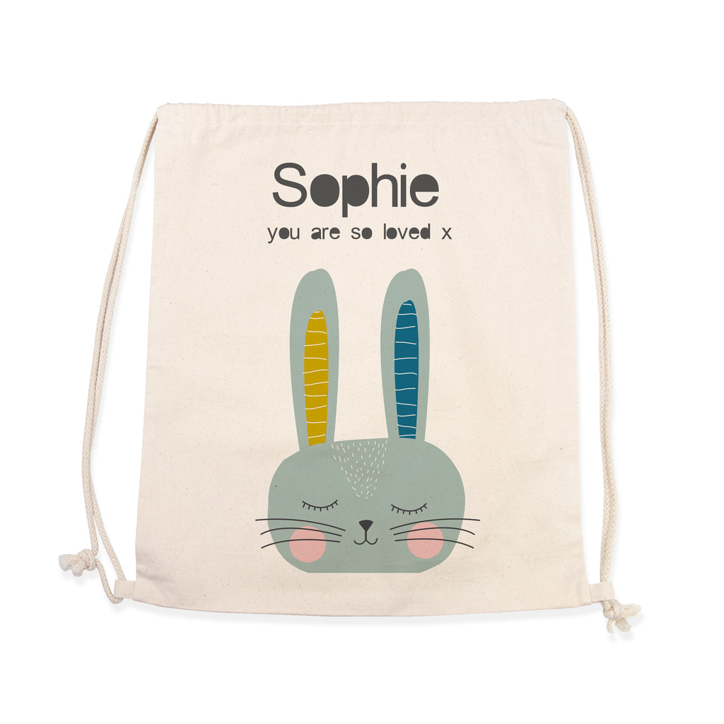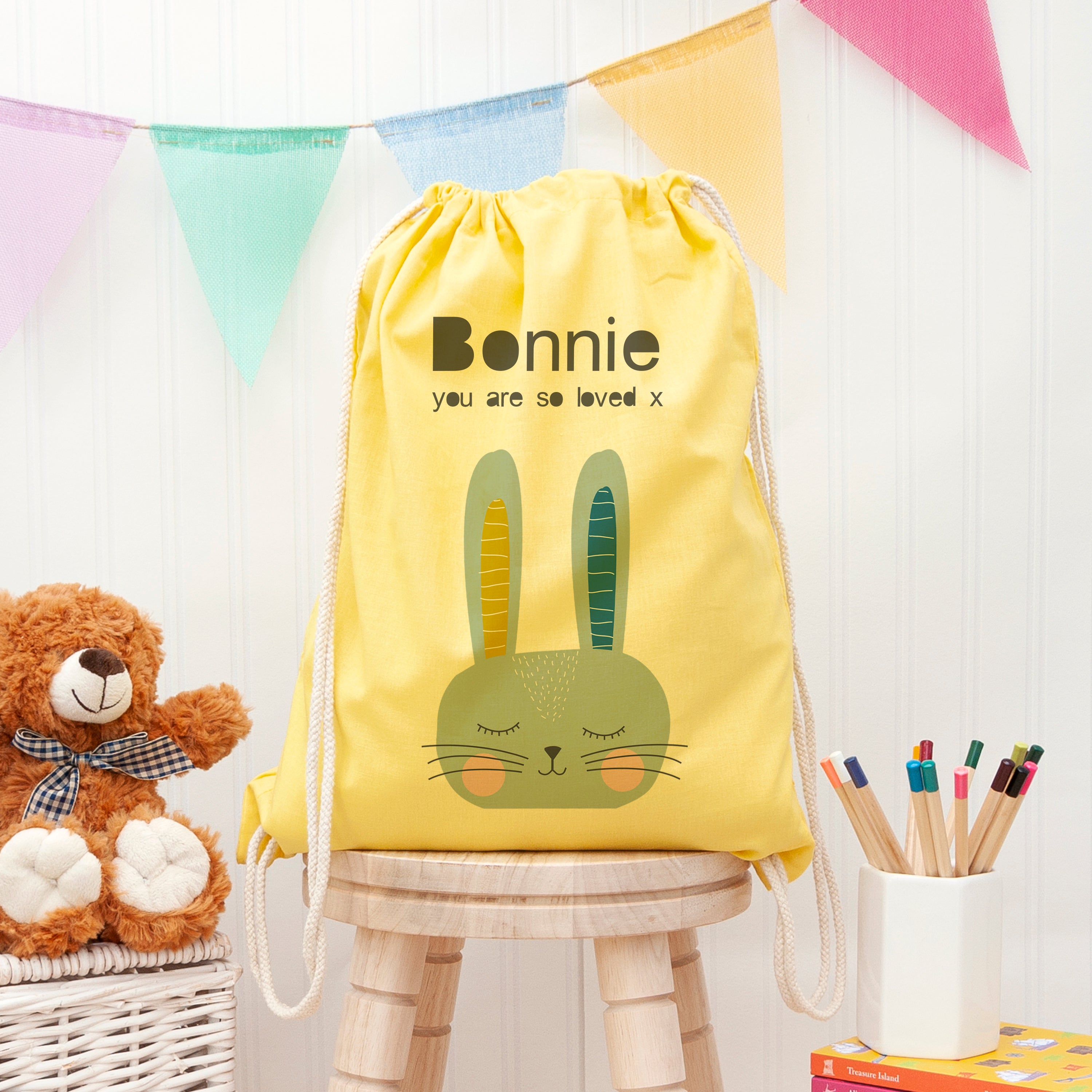 An adorable nursery bag that is sure to be the talk of the changing room before PE, your child is sure to love our personalised kid's rabbit PE kit bag. Whether you get it for their birthday, Christmas or as a back to school treat, their eyes will light up when they receive this thoughtful and practical gift.