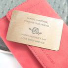 Treat your Mum to a special gift, perfect for her birthday or Mother's Day! With the flower engraved in the middle of the card, this metal insert is a way to keep a message with you at all times. Make a statement in gold, silver or copper with this gorgeous metal keepsake, which easily slots into any credit card compartment in any wallet or purse.