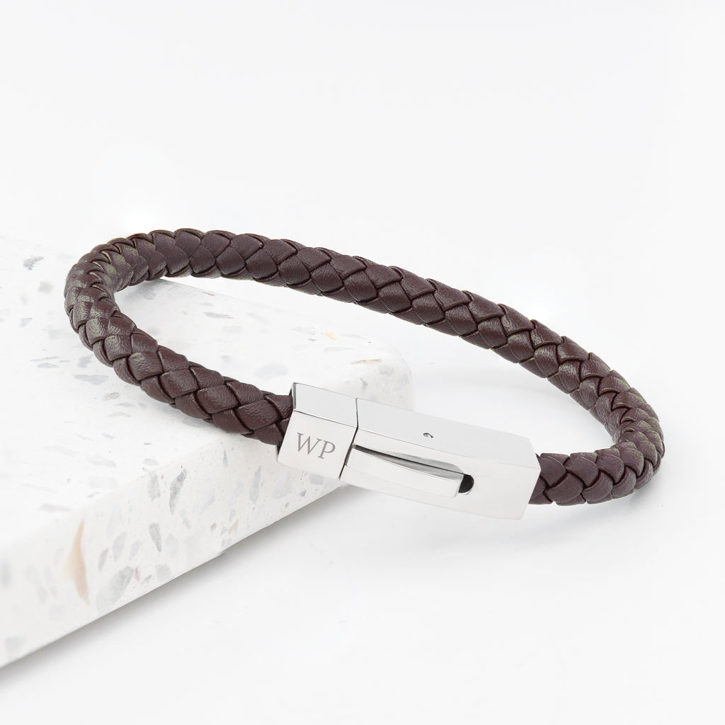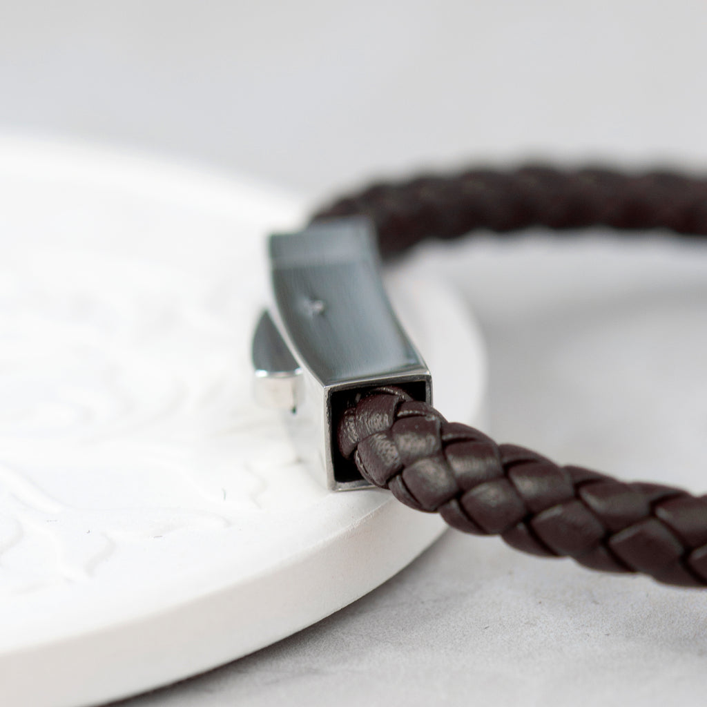 Sophisticated and timeless, our breathtaking personalised men’s brown leather contemporary clasp bracelet will make an exceptional gift for him on any special occasion, including birthdays, Valentine's Day, and Christmas.