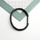 An effortlessly stylish men's leather bracelet with eye catching capsule tube clasp design. Our personalised men's capsule tube woven bracelet in black is made from treated, hard-wearing woven leather and has a distinctive clasp for added security as well being easy to wear. The perfect accessory to complete any night out outfit.