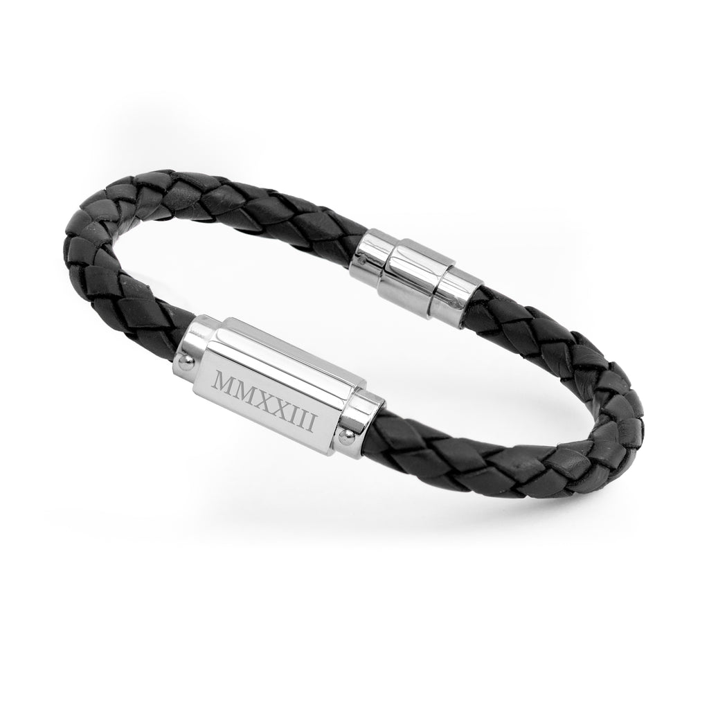 The epitome of elegance and sophistication, our gorgeous Personalised Men's Roman Numerals Luxury Black Leather Bracelet will make the perfect accessory for the classy gentleman in your life. This charming piece of men’s jewellery will make the perfect birthday, retirement or Christmas gift for him, wherever it celebrates the year of his birth or any other significant year in his life.