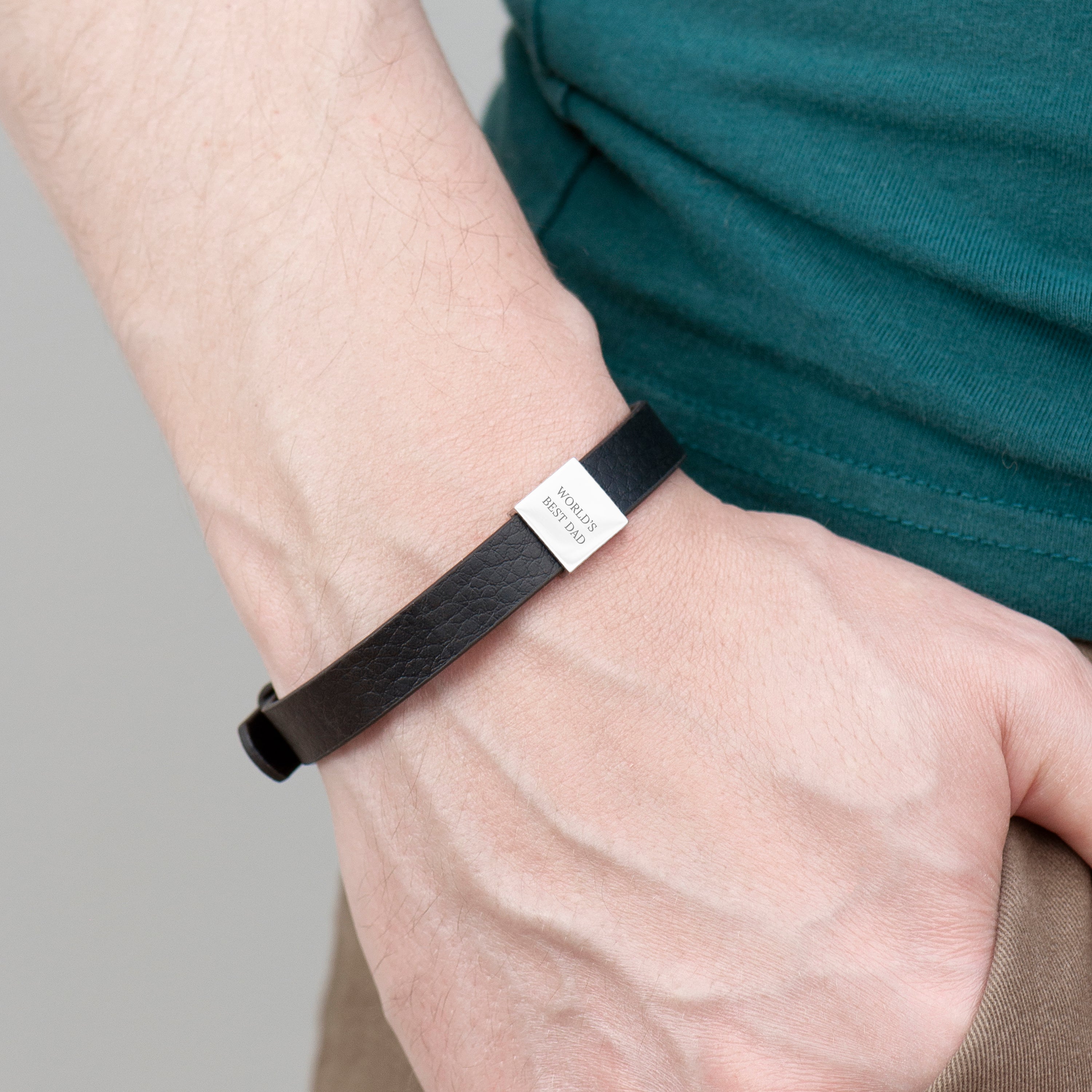 More than just a fashion accessory, our gorgeous Personalised Men's Soho Tag Message Black Leather Bracelet perfectly fuses sophistication and sentimentality to create a standout gift that he’ll love wearing, whatever the occasion. Whether you gift it to him for his birthday, a special anniversary or as a Christmas gift, this stunning bracelet will leave a lasting impression.