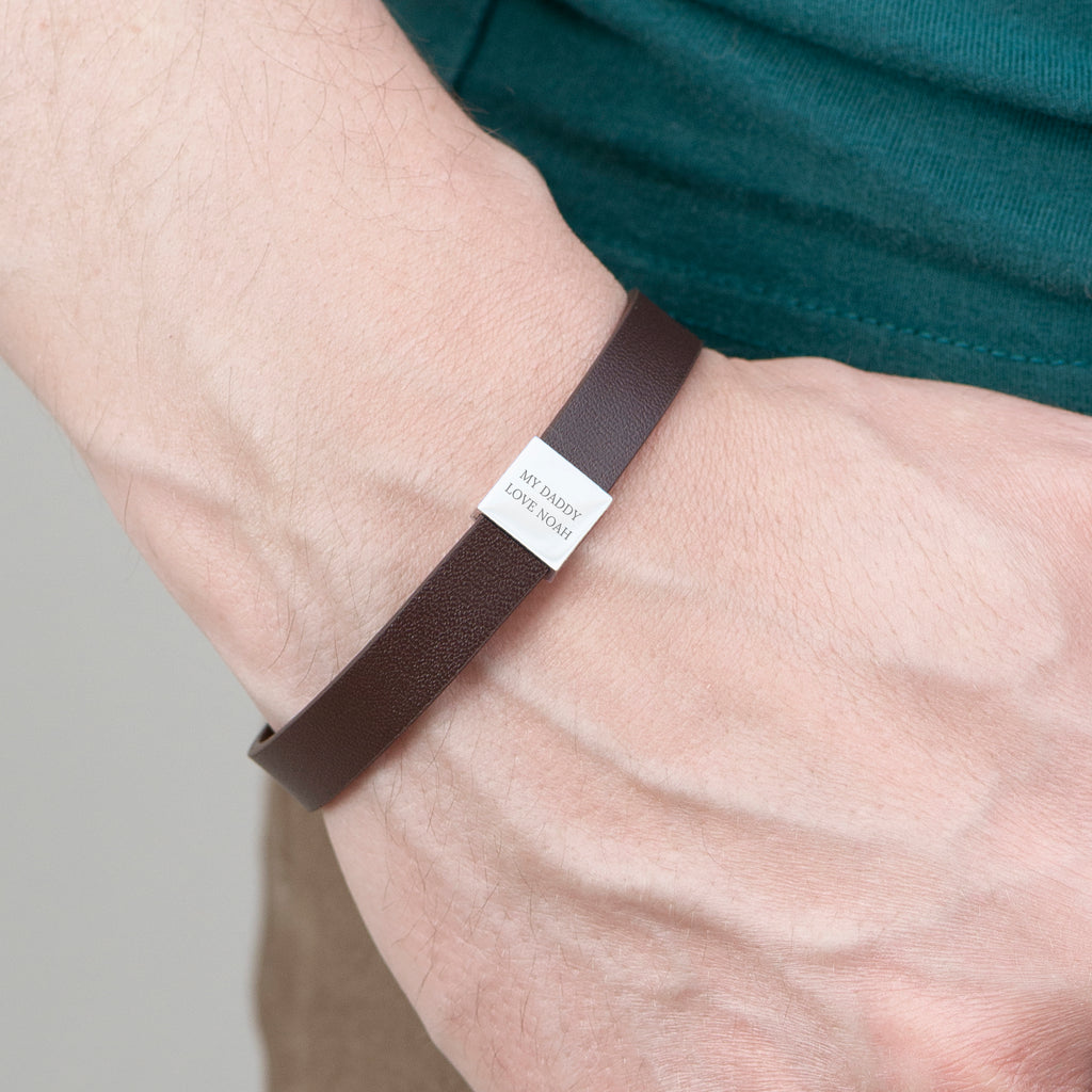 Bring the glamour of Soho to your loved one’s outfit with our luxurious Personalised Men's Soho Tag Message Brown Leather Bracelet, this stylish fashion accessory redefines what men's jewellery can be. It's not your typical leather bracelet; it's a symbol of his individuality and a reminder of the bond you share. Whether it's for a birthday, anniversary, Valentine’s or any other special occasion, this beautiful bracelet is the perfect way to show him how much he means to you.