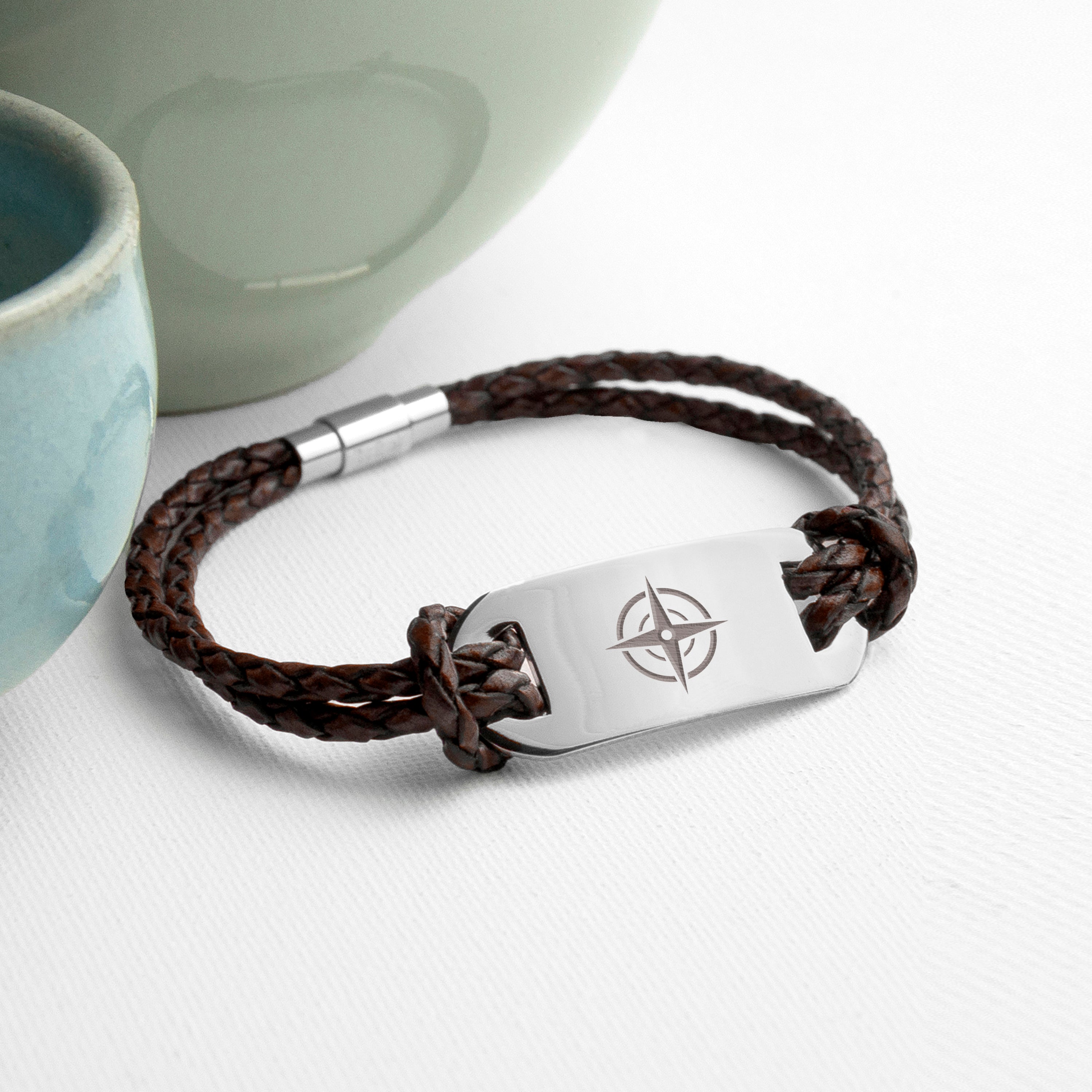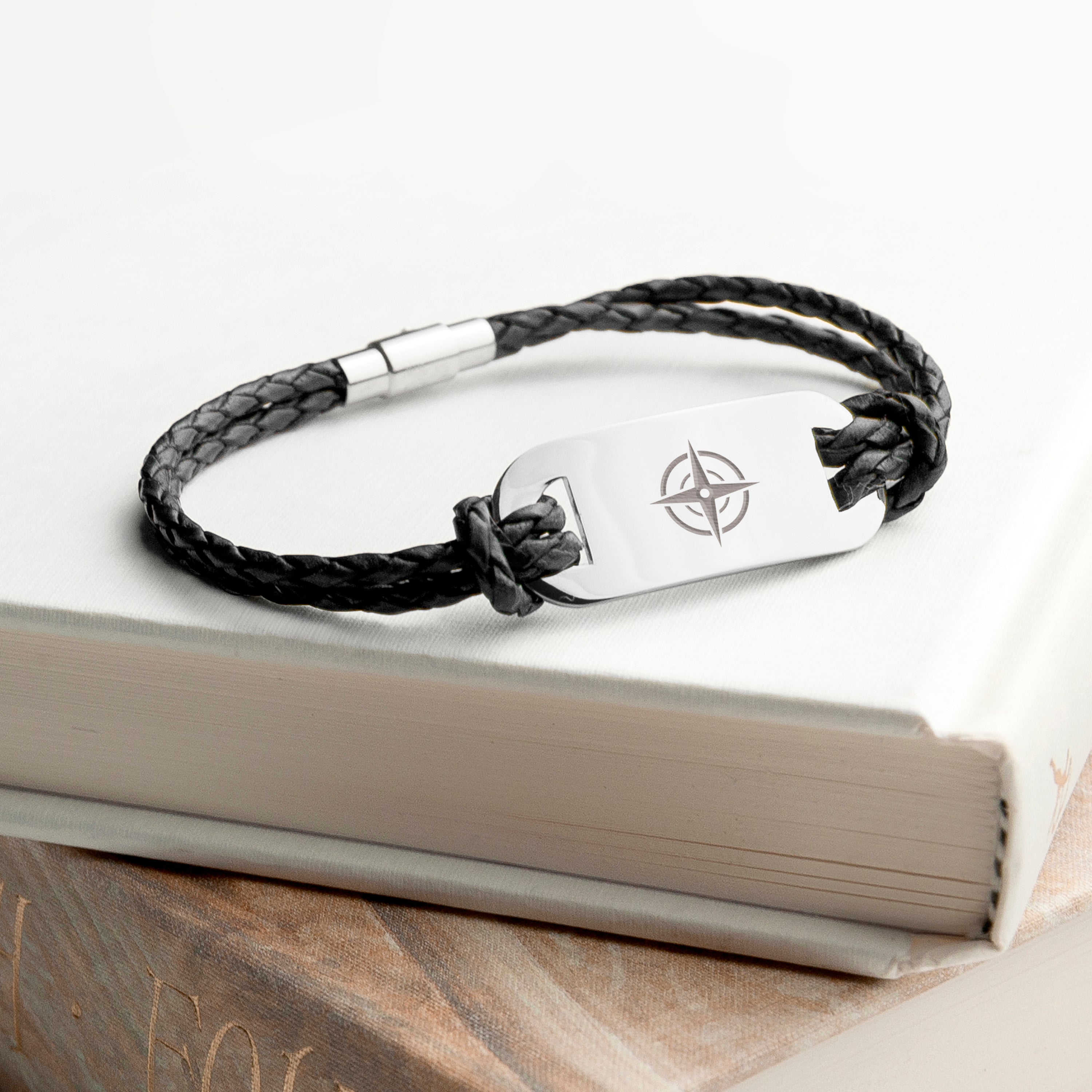 Personalised Men's Travel Compass Statement Leather Bracelet