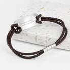 Add a meaningful message to your loved one and watch as this accessory transforms into a cherished memento that reflects their individuality. The engraving, done by our professional personalisation team, will be a reflection of their unique personality, making this luxury leather bracelet an extraordinary keepsake that will hold a special place in their heart.