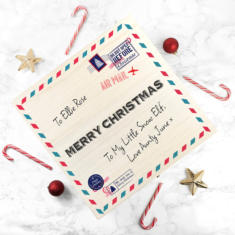For a gorgeous gift that’ll deliver the goods this Christmas, get your little one a Personalised Nostalgic International Mail Christmas Box. It is designed like the front of a traditional international letter, stamp and everything, with a cute red and blue border and a Christmas card-like message in the centre.