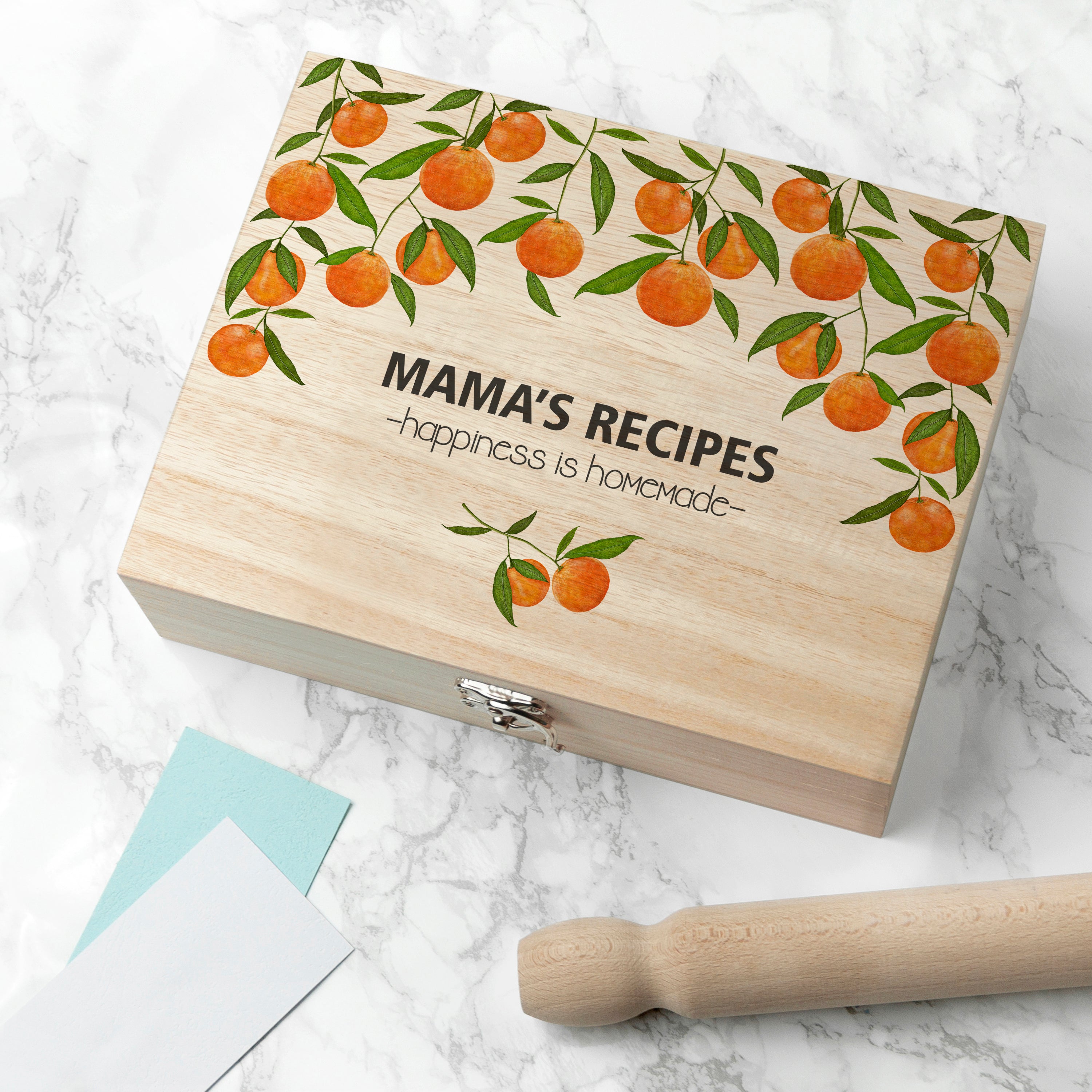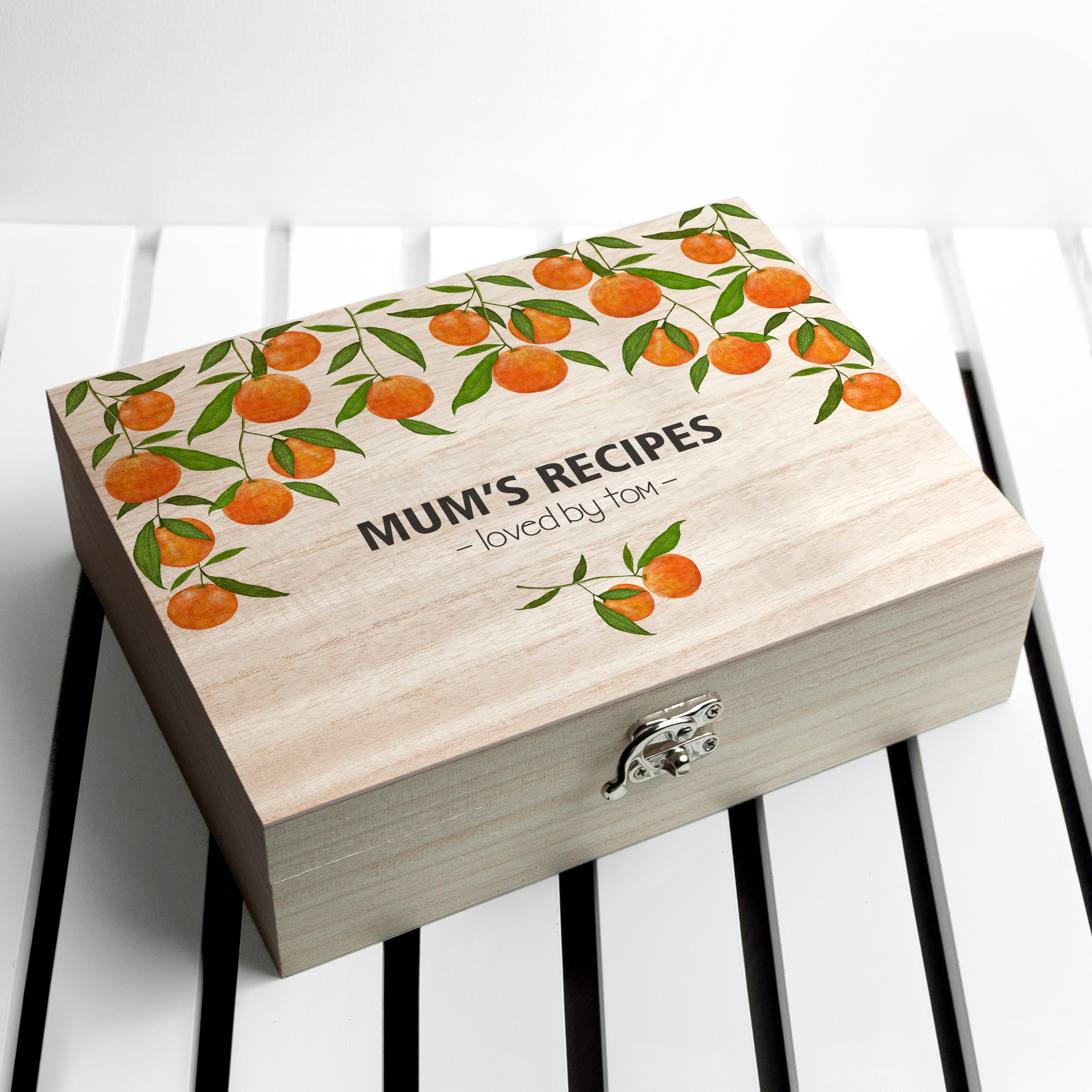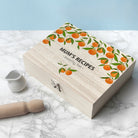 Delight the passionate home cook or baker in your life with our beautifully illustrated Personalised Orange Grove Recipe Card Box. This sentimental kitchen keepsake brings a splash of sunshine to every culinary adventure. Whether it's a Mother’s Day gift, a thoughtful birthday present, or a charming Christmas surprise, this recipe box is perfect for anyone who finds joy in cooking, baking and collecting their favourite family recipes.