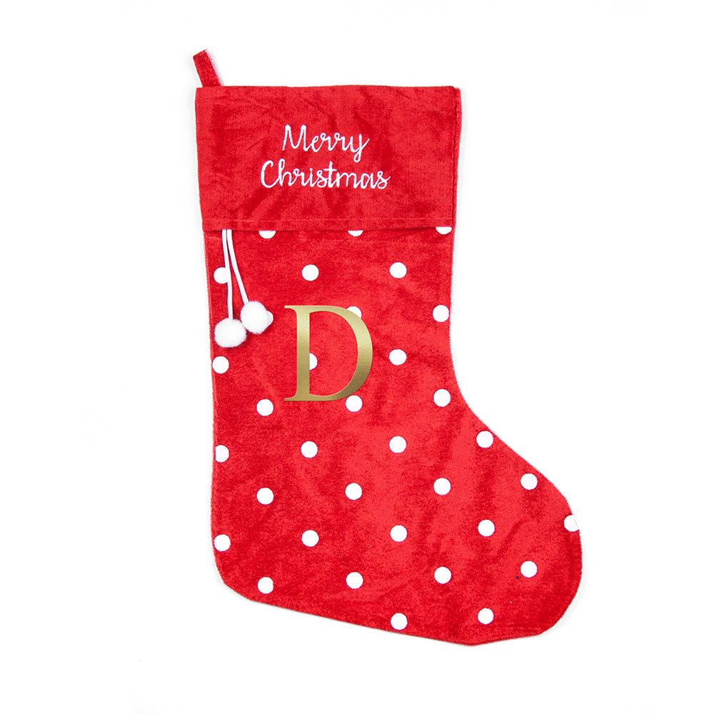 Personalise it with an initial in a gorgeous metallic foil for a striking Christmas stocking. The words Merry Christmas come as standard text embroidered on the top of the stocking.