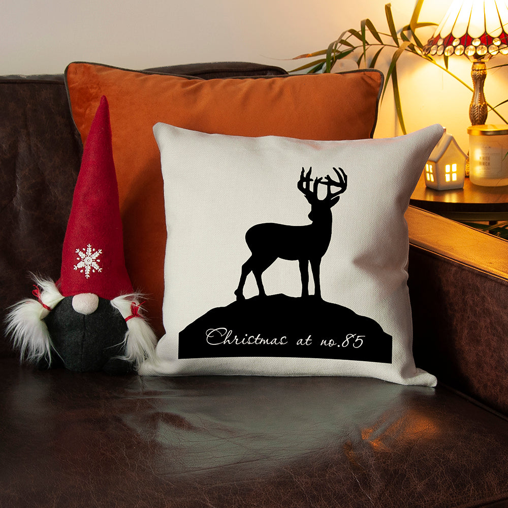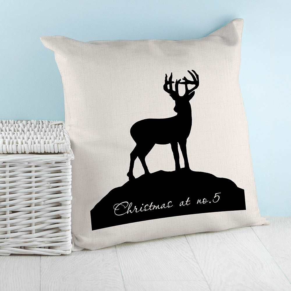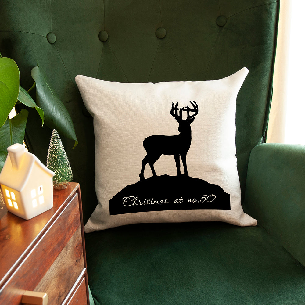 Add a personal touch to your Christmas decor, with our stylish personalised silhouette cushion cover, which features a striking reindeer silhouette standing on top of a hill. Made from linen, this beautiful and meaningful cushion cover will bring the north pole right into your living room.