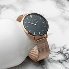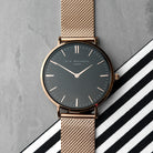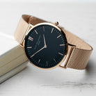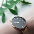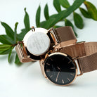 Elie Beaumont Personalised Ladies Rose Gold Mesh Strapped Watch With Black Dial