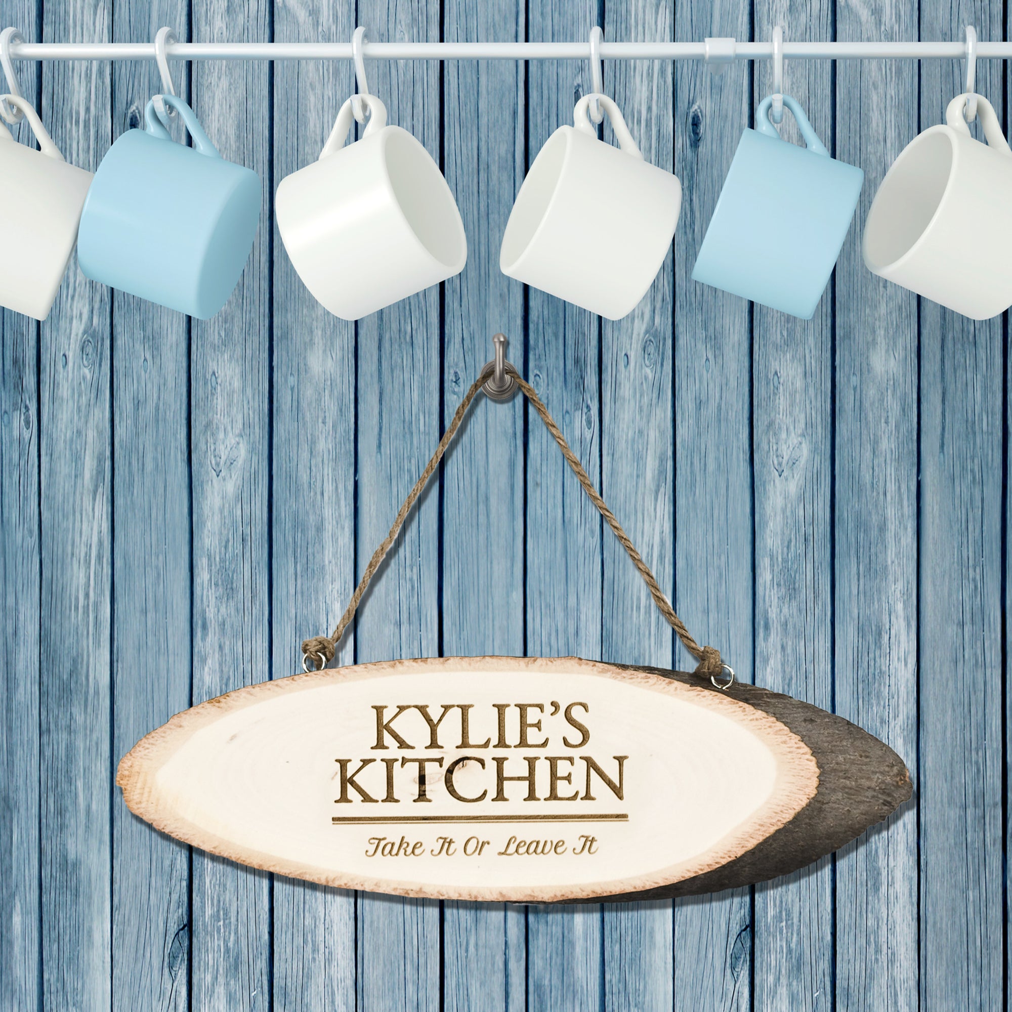 The sign is beautifully simple in style, letting the natural wood grain shine through and giving each piece its own subtle character. The word ‘Kitchen’ comes as standard, etched in clear, easy-to-read capitals that instantly sets the theme. What makes it unique is the personalisation, you can add a name at the top (in matching capitals) along with a message of your choice underneath (in a stylish script style font), making it truly one-of-a-kind.