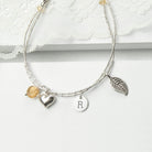 The delicate bracelet is accentuated by the semi-precious citrine gemstone that comes with three other charms to make the bracelet. The heart charm can be personalised with an initial.