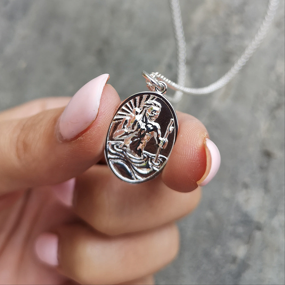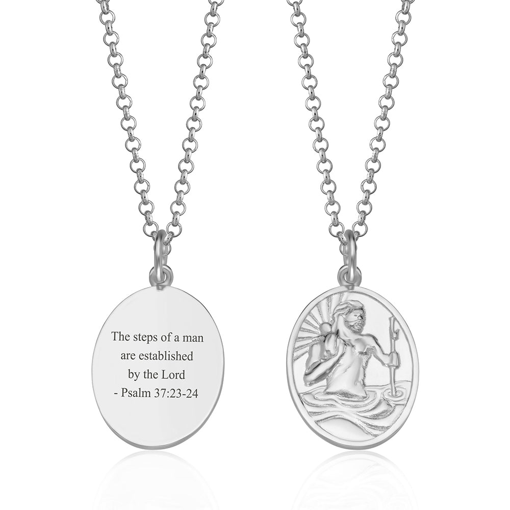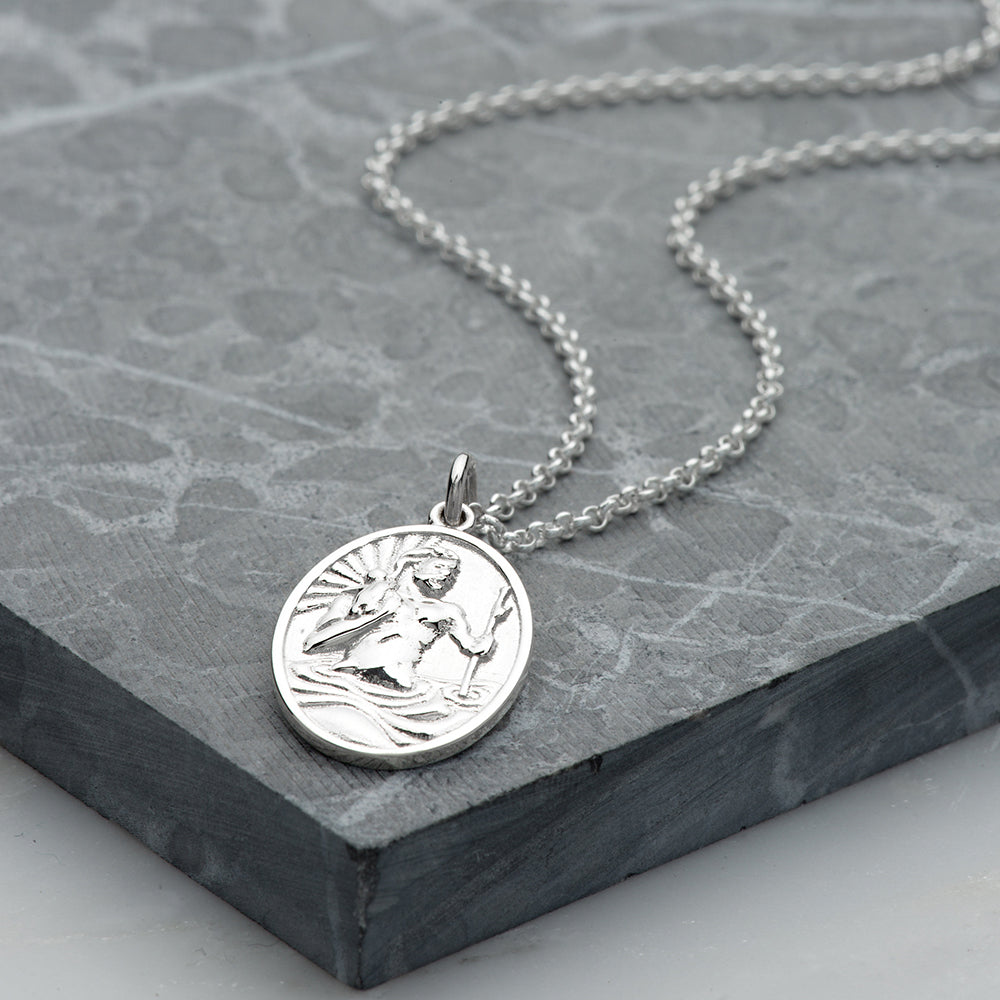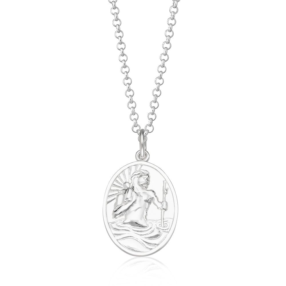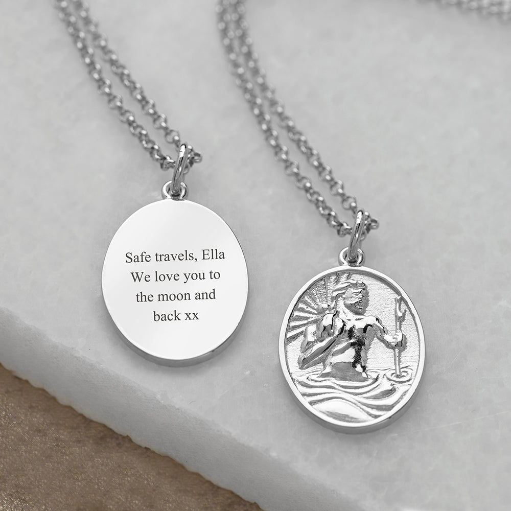 St. Christopher is the patron saint of travellers and is said to protect those who embark on journeys, so carry him with you wherever you go for the best of fortune whilst travelling with our simply stunning personalised sterling silver St. Christopher’s pendant necklace.