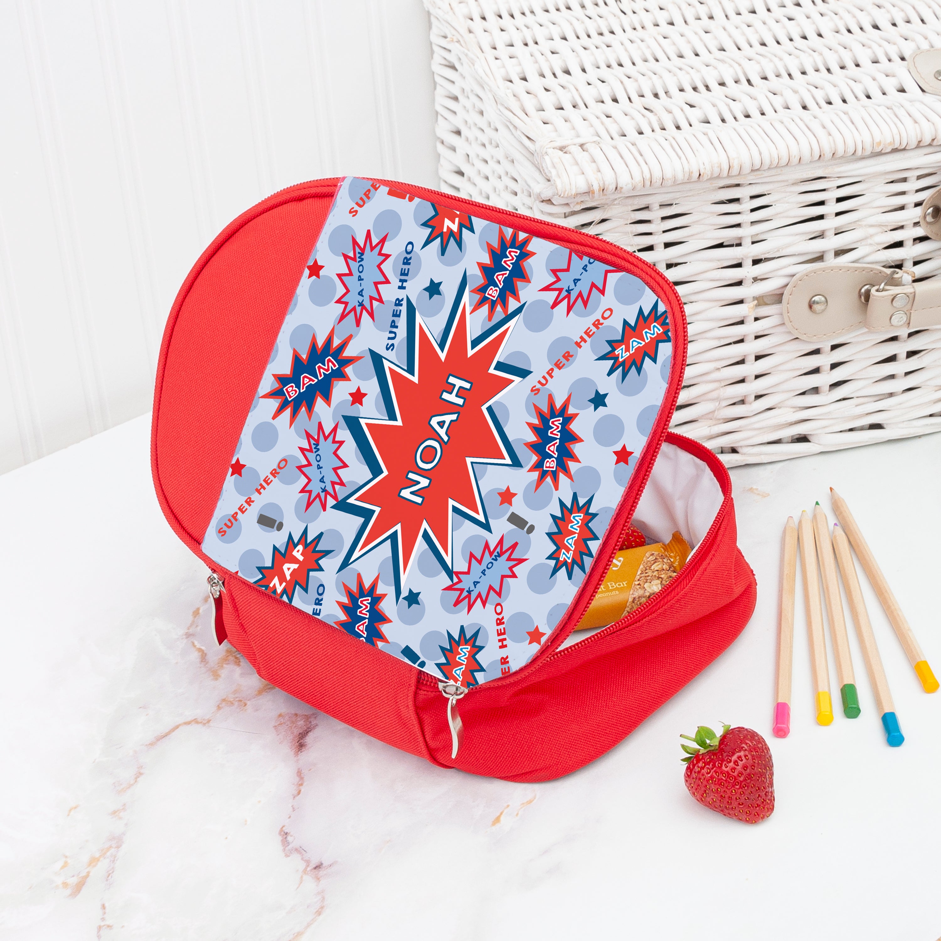 Look no further than our stylish personalised superhero red lunch bag if you're looking for the perfect birthday or Christmas gift for your little superhero or keen comic reader. The Robin to your Batman, this durable and capacious lunch bag will make a trusty lunchtime sidekick, that will make lunch times a whole lot more fun and exciting. Their friends will also want one of their own too!