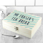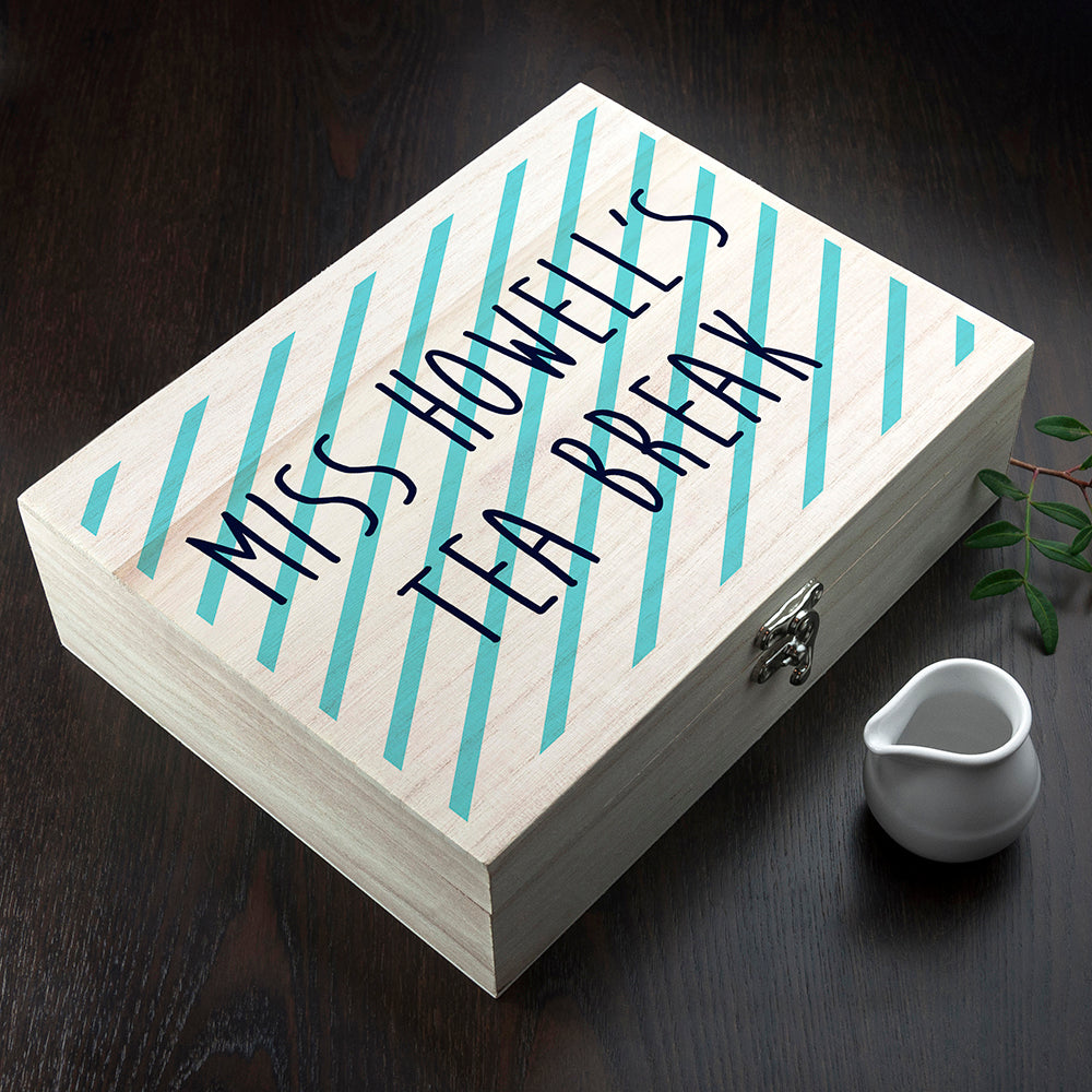 Know a special teacher that has been truly wonderful and deserves a gift to show them your appreciation? Our beautiful personalised teacher's tea break box with stunning stripe design is a perfect gift for that inspirational person, who puts the tea in teacher. A delightful wooden tea box made from luxury solid pine which will make a stunning addition to their desk.