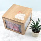 The natural solid oak wood grain gives it a rustic charm, while its clever dual-purpose design makes it both a photo frame and a keepsake box in one. Each of the four outer sides is fitted with a space for a cherished photograph, perfect for capturing all those treasured moments, whether it's family holidays, baby pics with mum, or a family photo that deserves to be remembered forever.