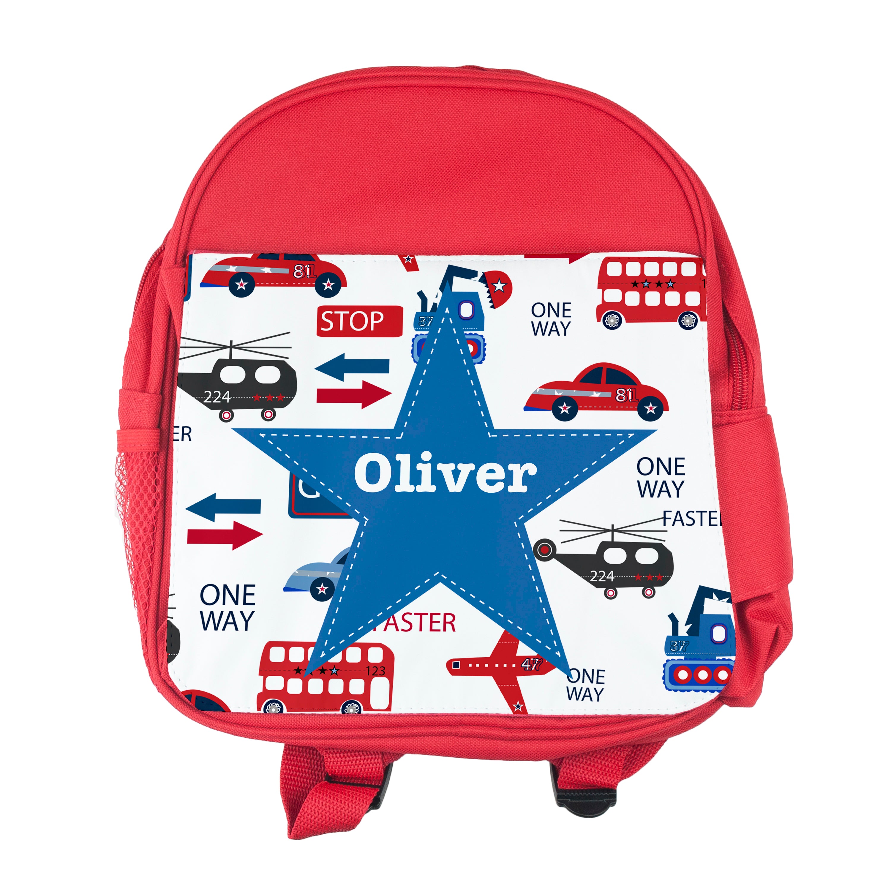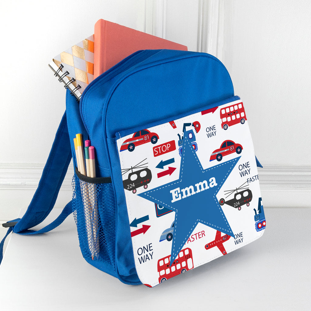 Cruise the open highways or soar the skies every lunch time with our personalised transport themed mini kids rucksack. The perfect birthday, Christmas or back-to-school gift for him, this handy and capacious school bag is just the right size for all your school essentials, like books and stationary.