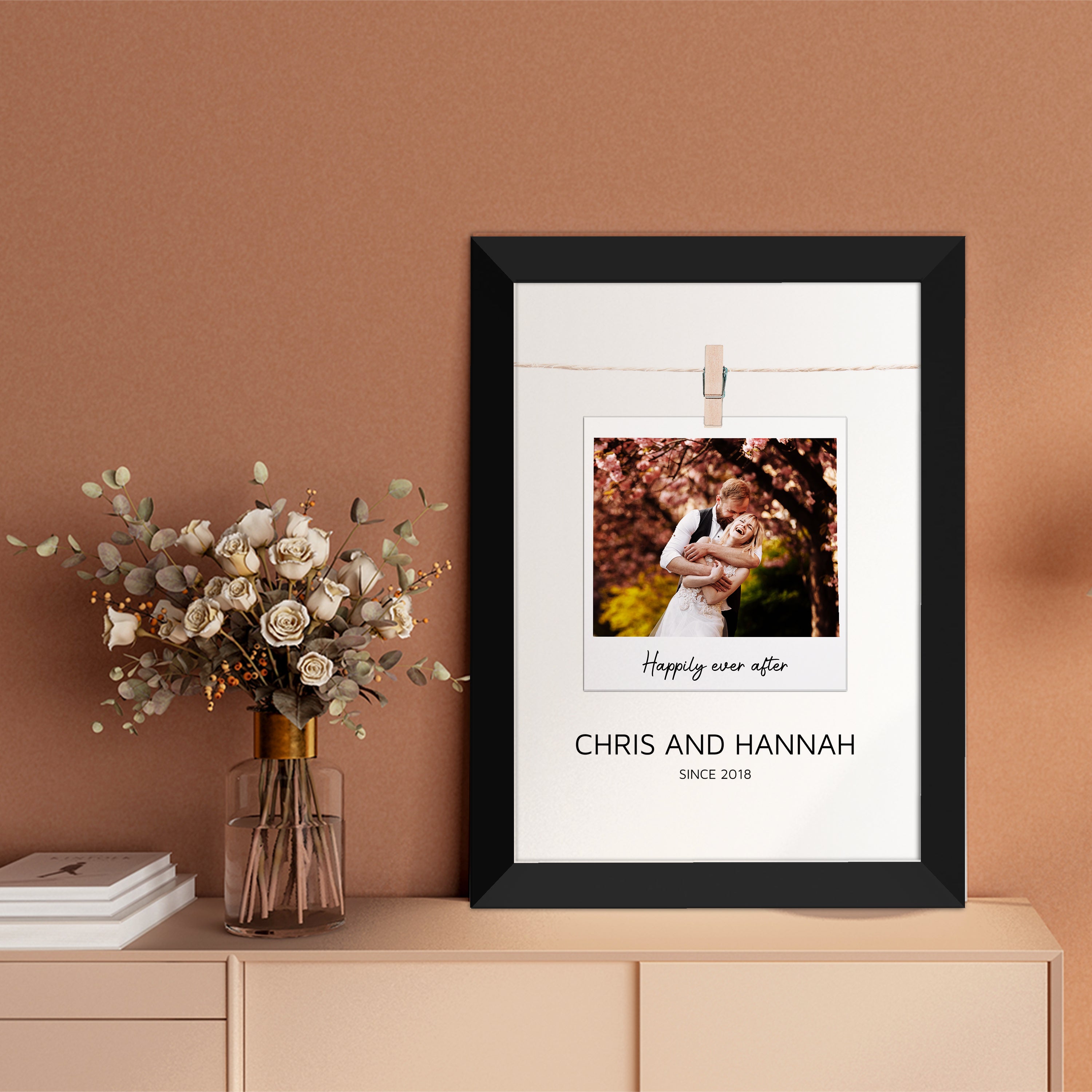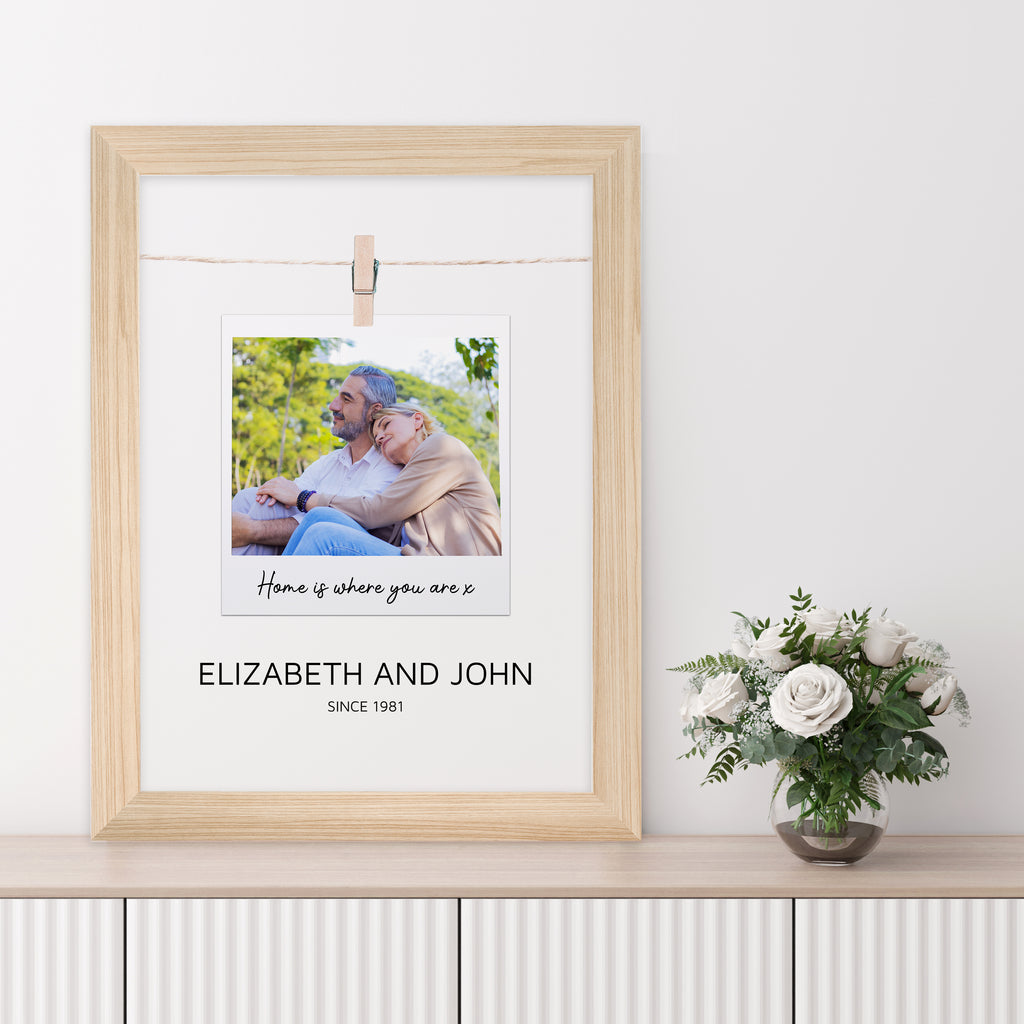 Underneath this retro polaroid image, write the yours and your partner’s names and the year you first met (or got married) to make it a thoughtful gift that will hold a special place in your hearts. ‘[Name 1] and [Name 2], Since [Year]’ comes as standard text.