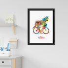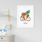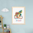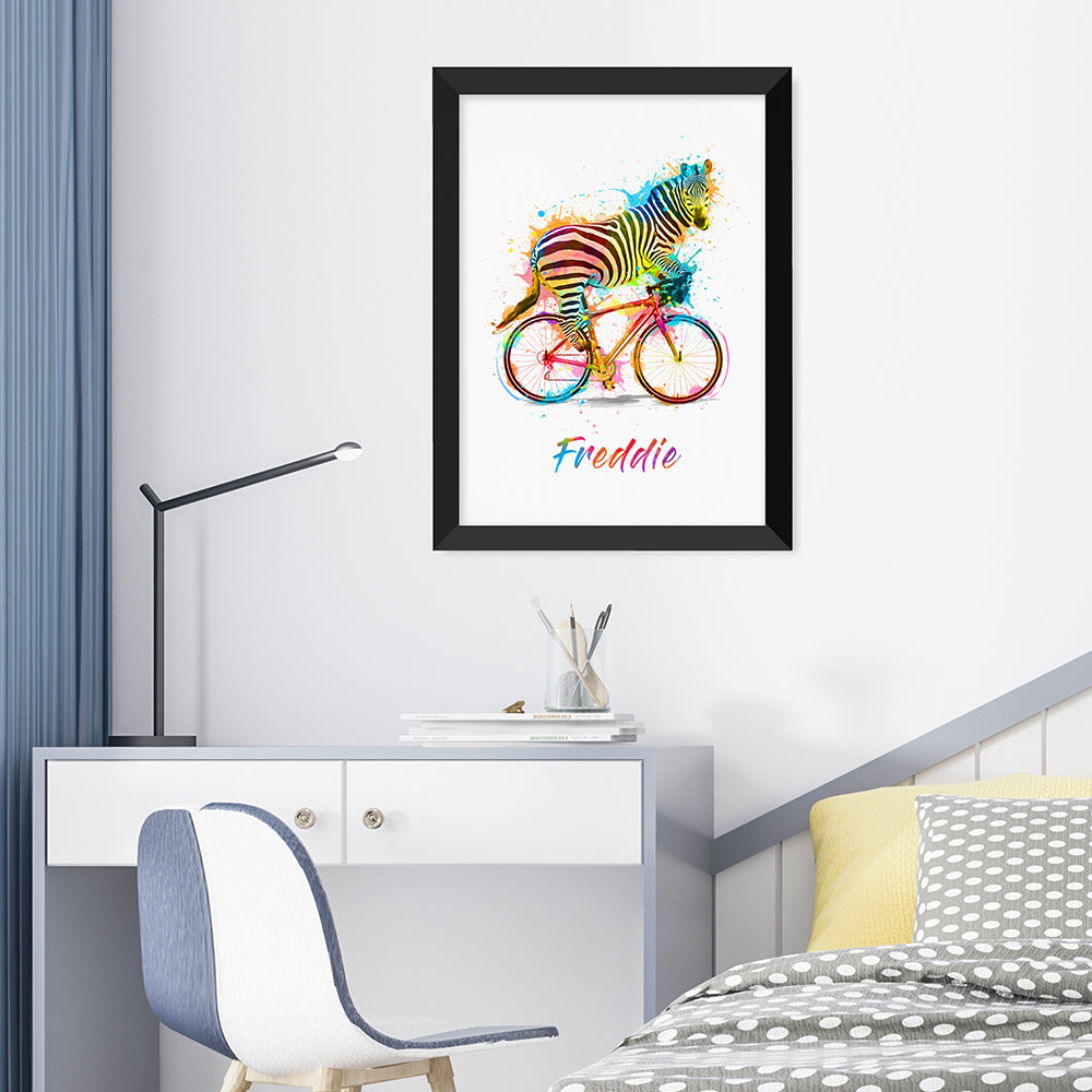 Get your loved one a super-fun personalised watercolour zebra cycling print any kid will love. We’ve added a splash of colour to these notoriously monochrome creatures to create a stunning work of art that’s sure to become the focal point of any kid’s bedroom, nursery or playroom.