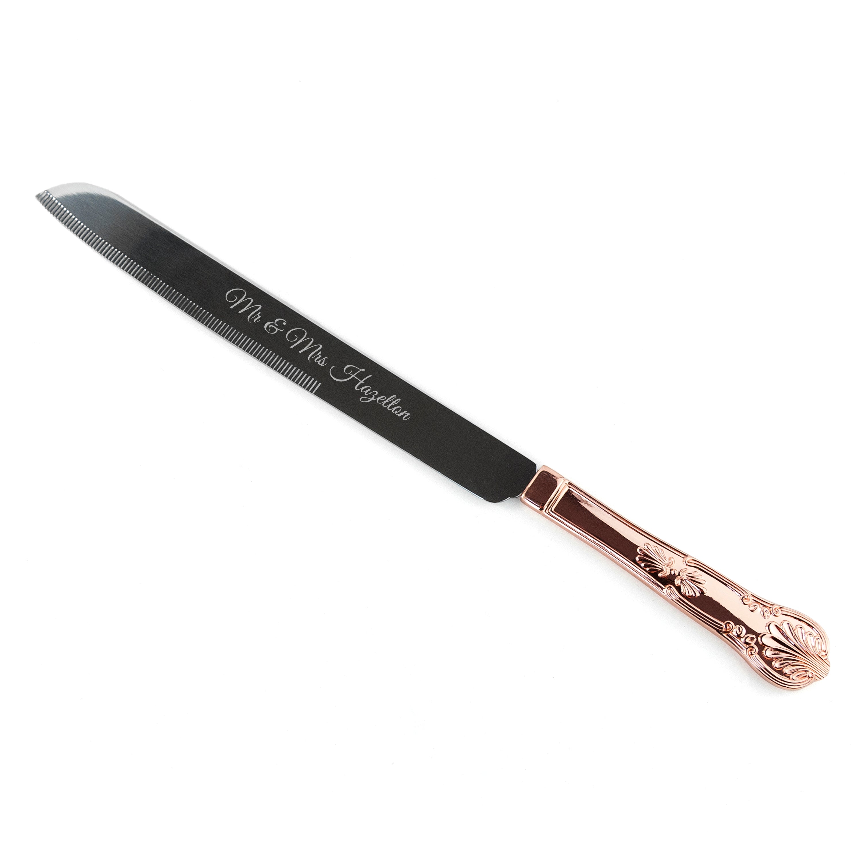 This cake knife is available with a handle in both silver and rose gold finishes, and comes impressively presented in a stunning gift box, ready to give as a heartfelt present or to store as a keepsake. Select your preferred font from the dropdown list: Serif, Sans Serif or Script