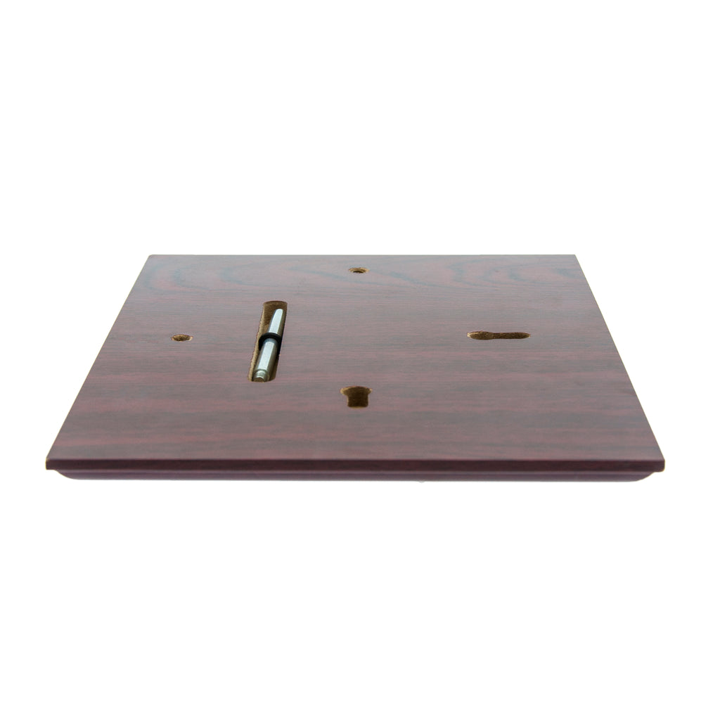 The plaque can be hung on a wall or stood up using the pop up stand.