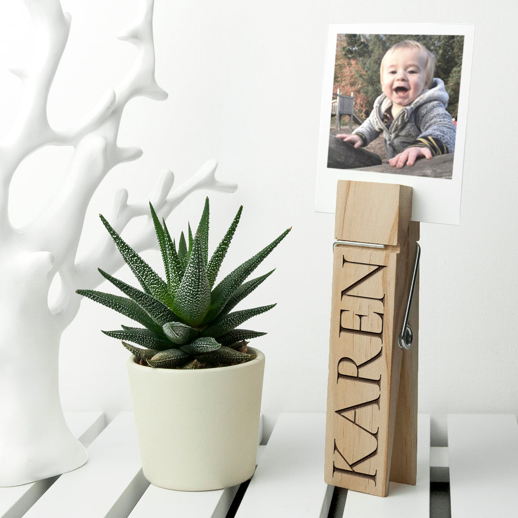 Personalise this beautiful homeware accessory with a name or message and our dedicated team of artisan creatives will get to work engraving your chosen personalisation onto their peg keepsake - the result being a breathtakingly beautiful and ultra-meaningful gift that will brilliant showcase any photo and brighten up any room.