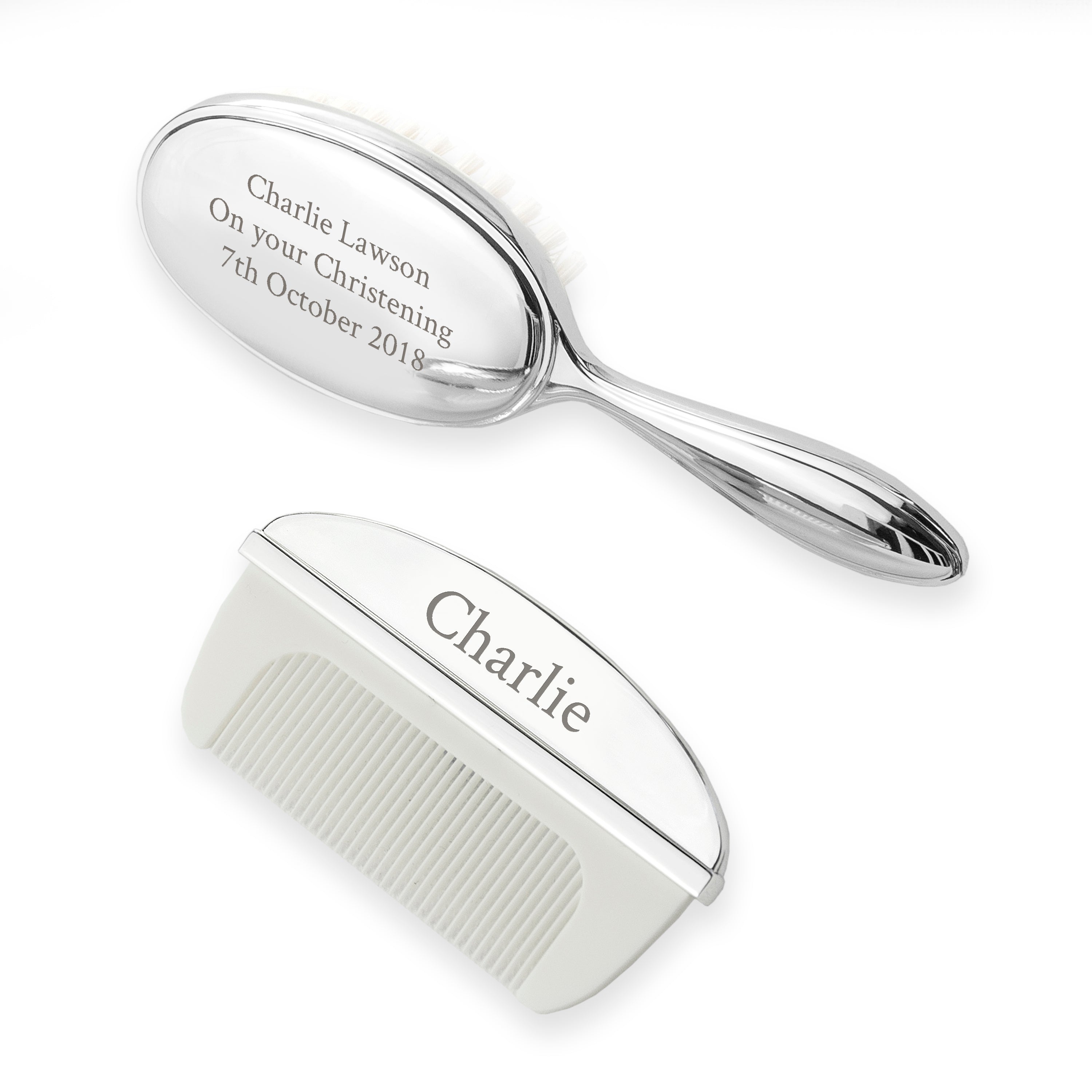 Our luxury personalised silver plated baby brush and comb set is an amazing first birthday or Christmas gift for babies and toddlers or as a Christening, baby shower or naming day gift. This premium quality gift will make for ultra-meaningful keepsake that your child is sure to treasure as they grow older.